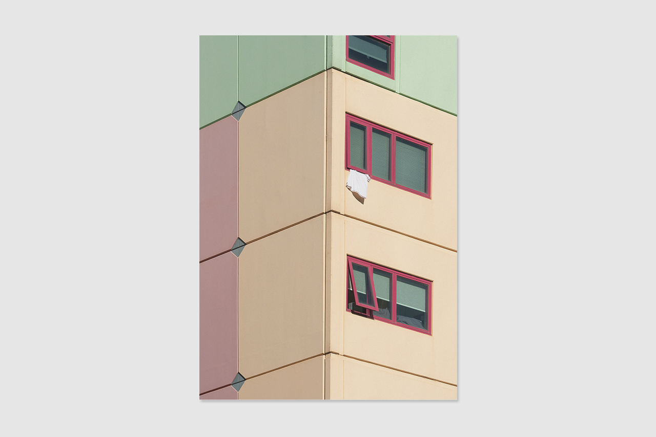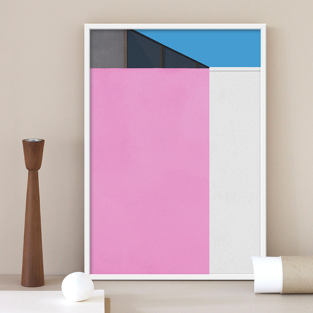 건물의 외벽 일부분을 마치 미니멀리즘 회화처럼