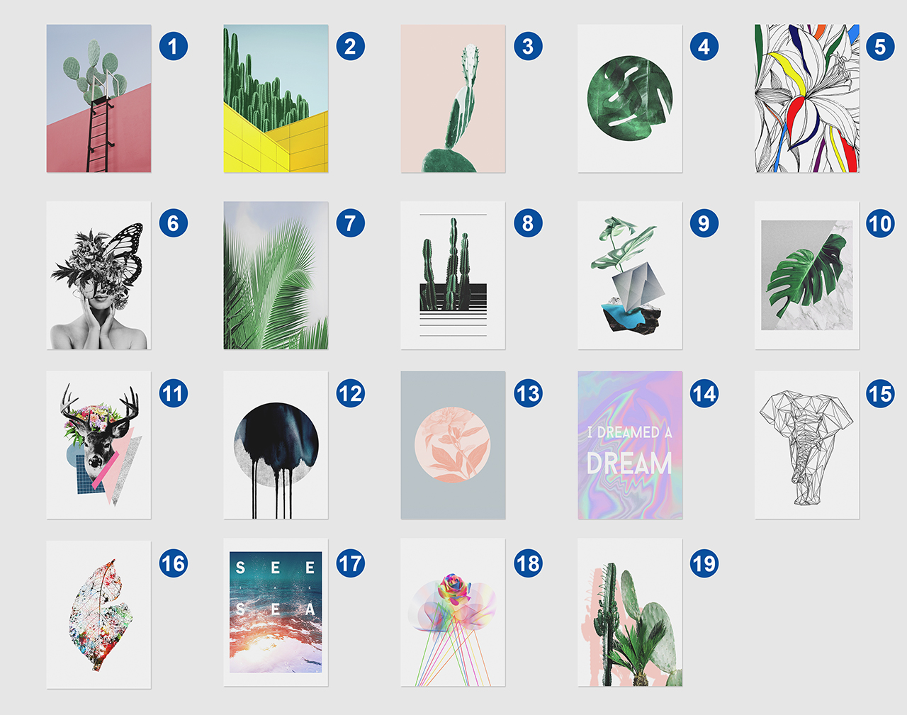 다양하고 생생한 컬러의 일러스트 포스터 19종으로
