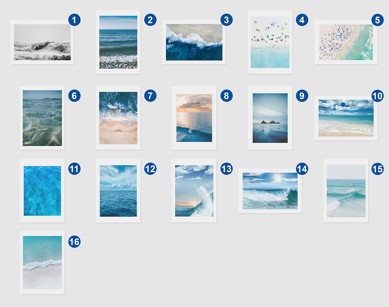 그럼 이제 판매 상품인 '시원한 여름바다 풍경 감성사진 포스터 16종 북유럽인테리어액자' 에 대해 상세하게 안내해드릴게요!