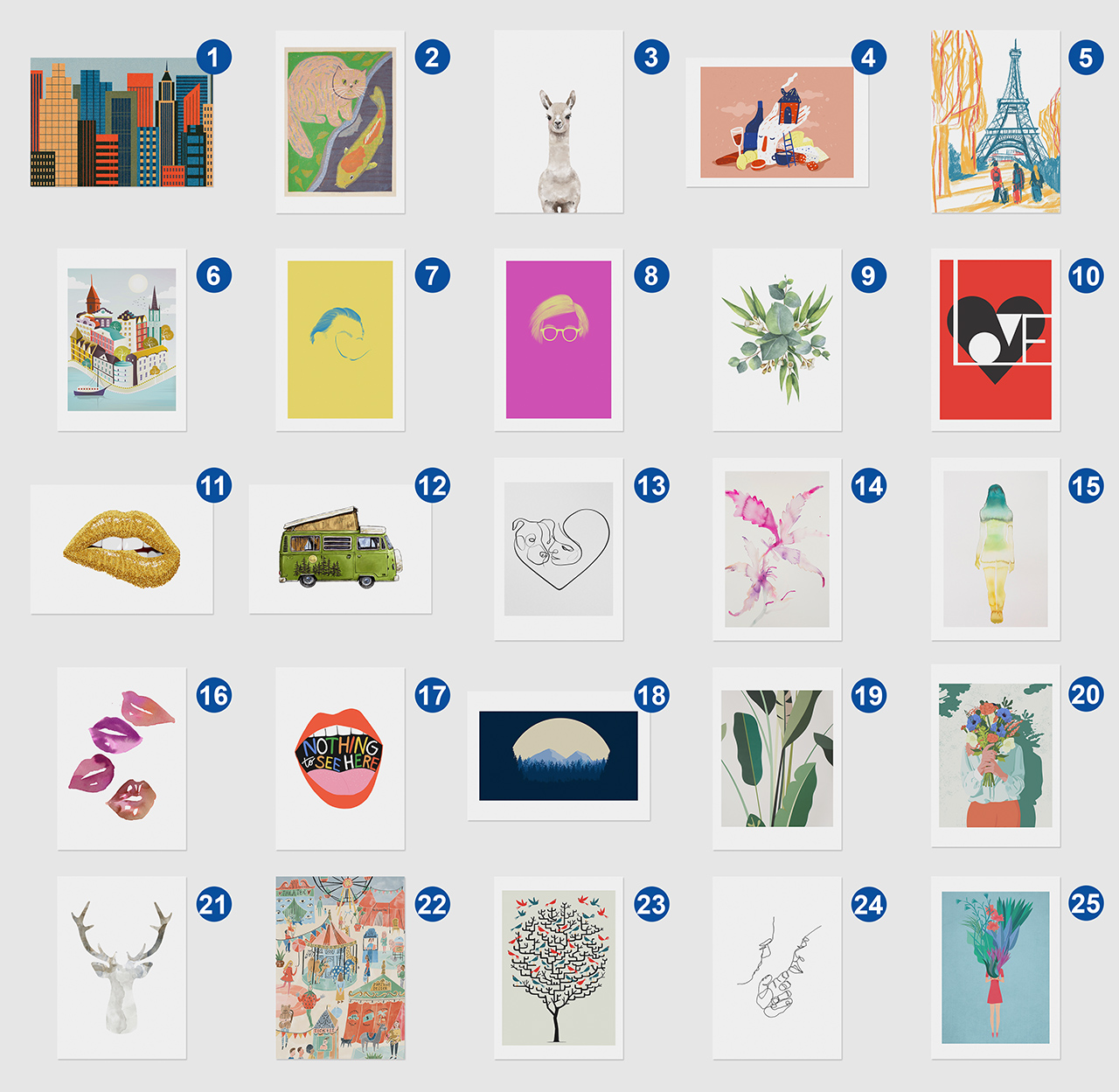 일러스트 아트 포스터를 특별히 25종으로 다채롭게 준비했어요.