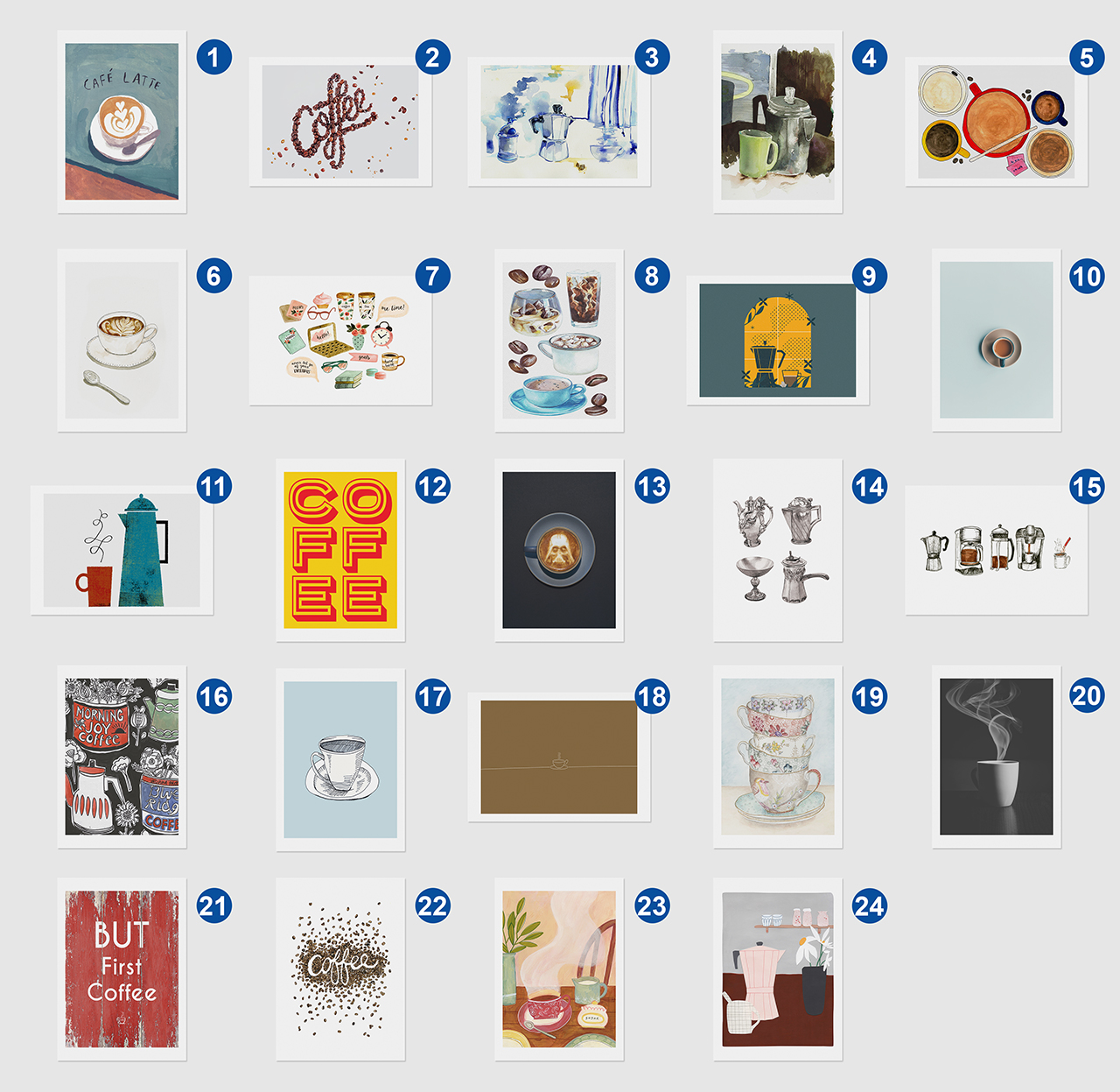 <홈카페 커피숍 감성 인테리어그림 24종 일러스트 북유럽액자>
