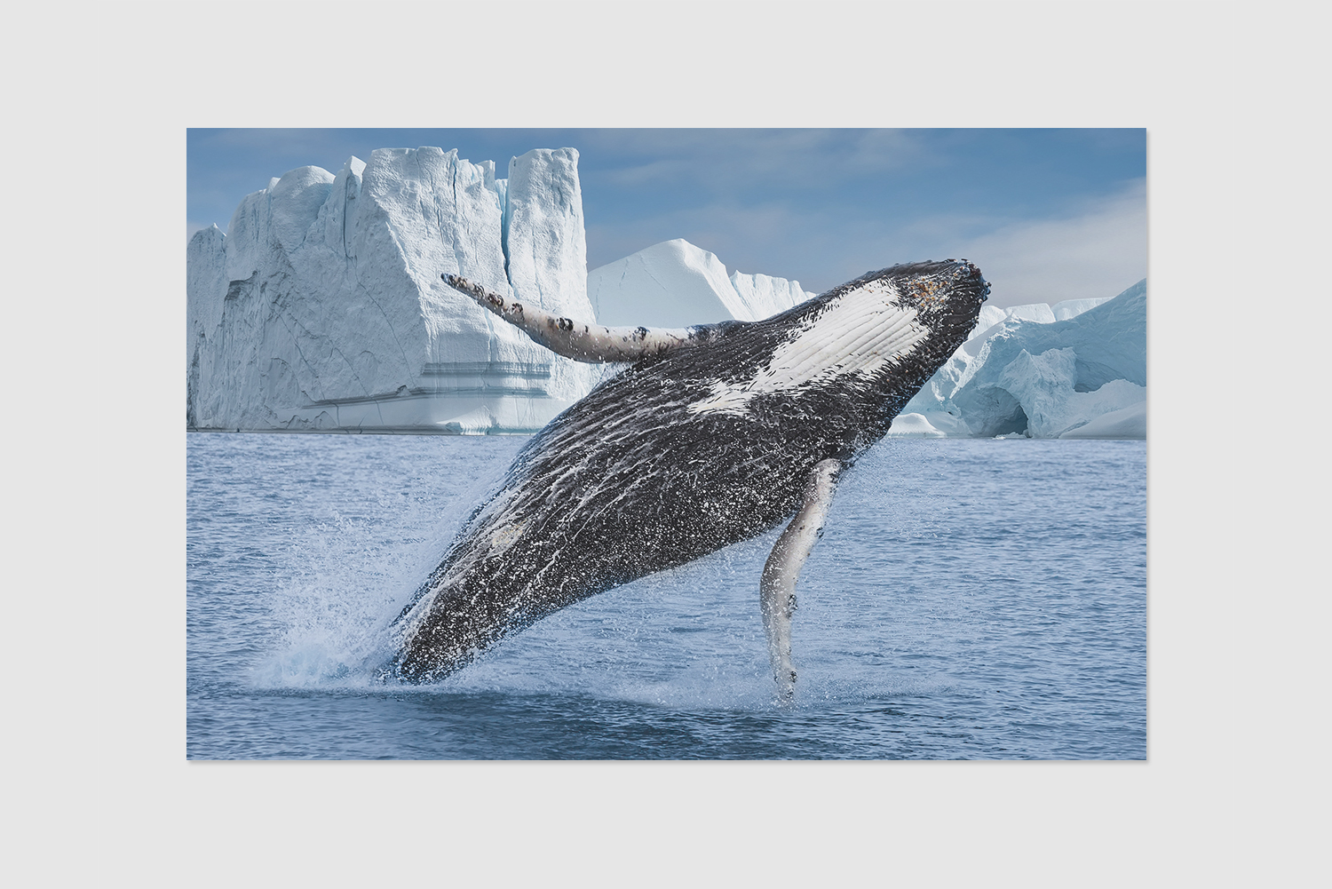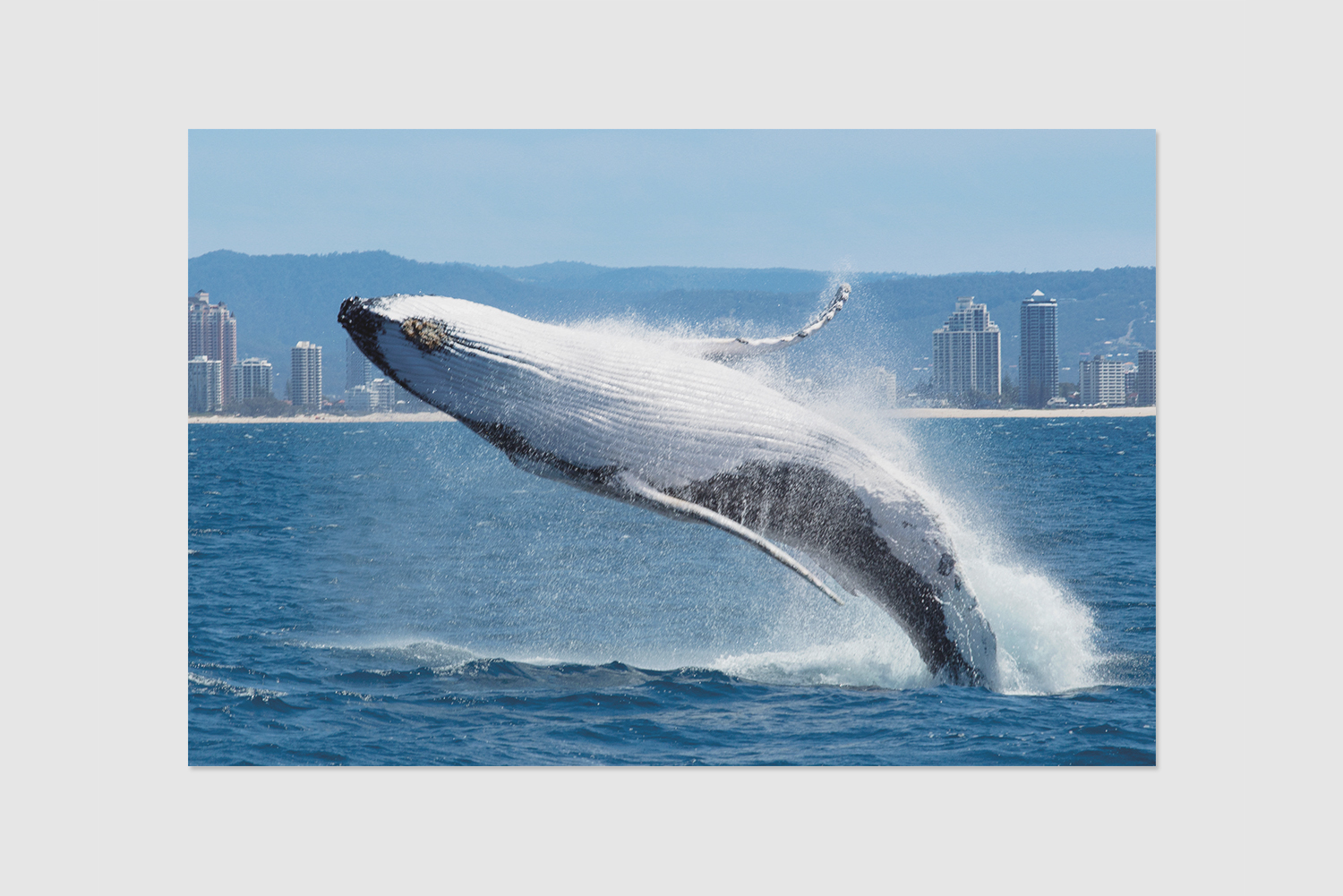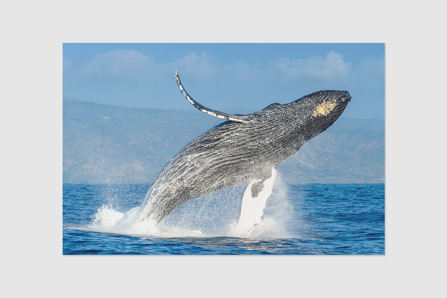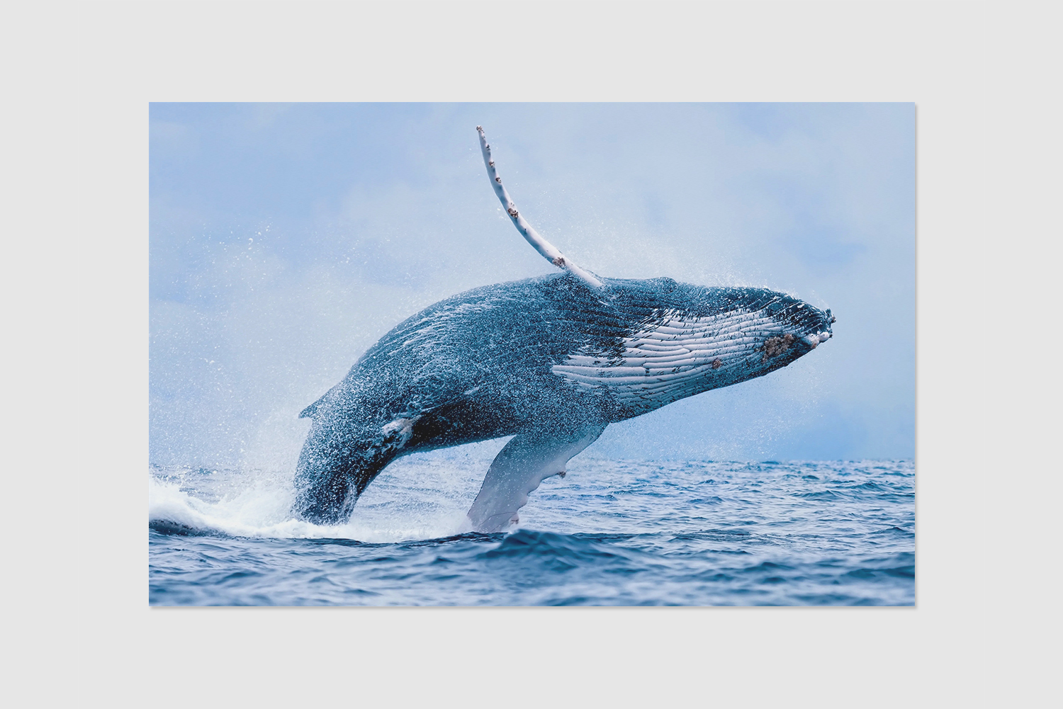 고요한 바다 위로 힘차게 솟구치는 고래의