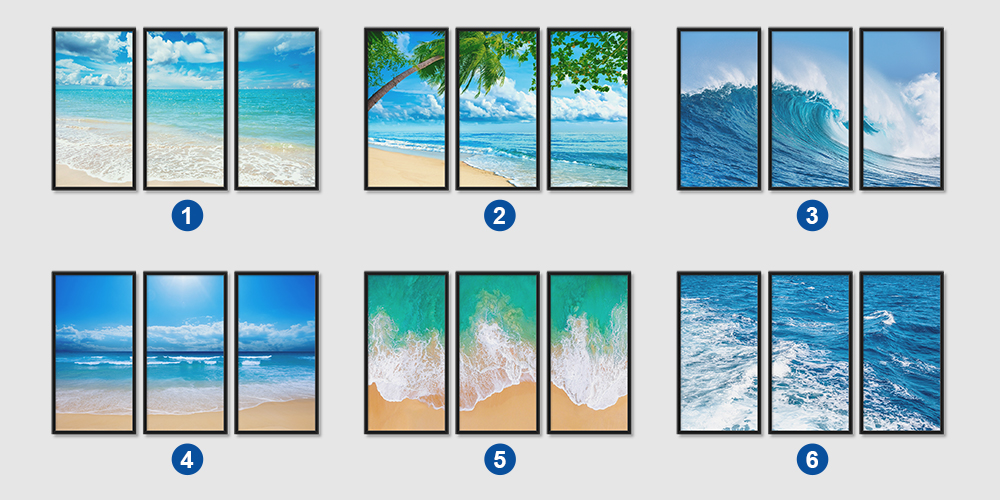 그럼 이제 판매 상품인 '3분할 재물과 기운 바다 6종 거실 풍수 인테리어액자 프레임 포함' 에 대해 상세하게 안내해드릴게요!
