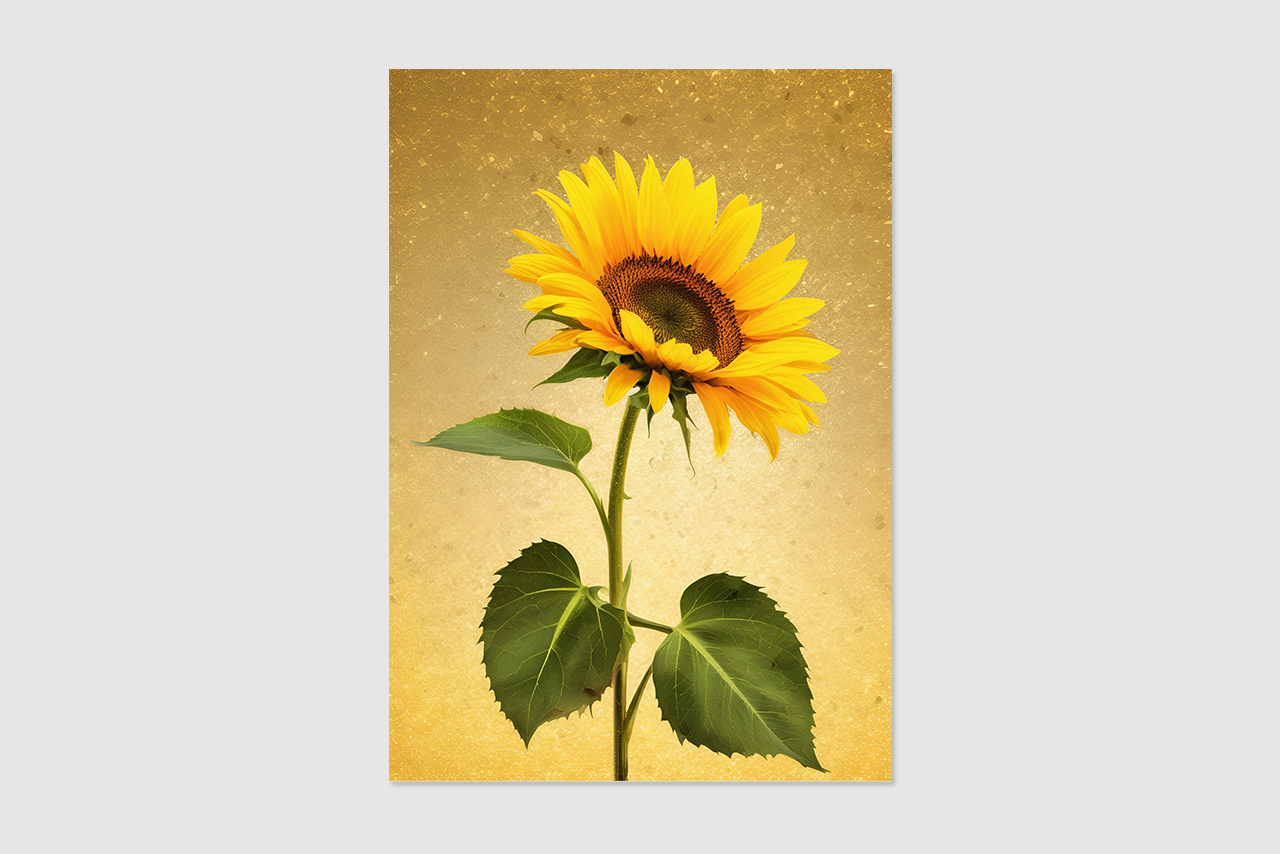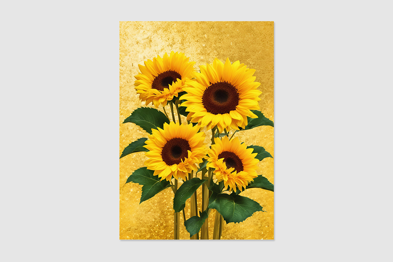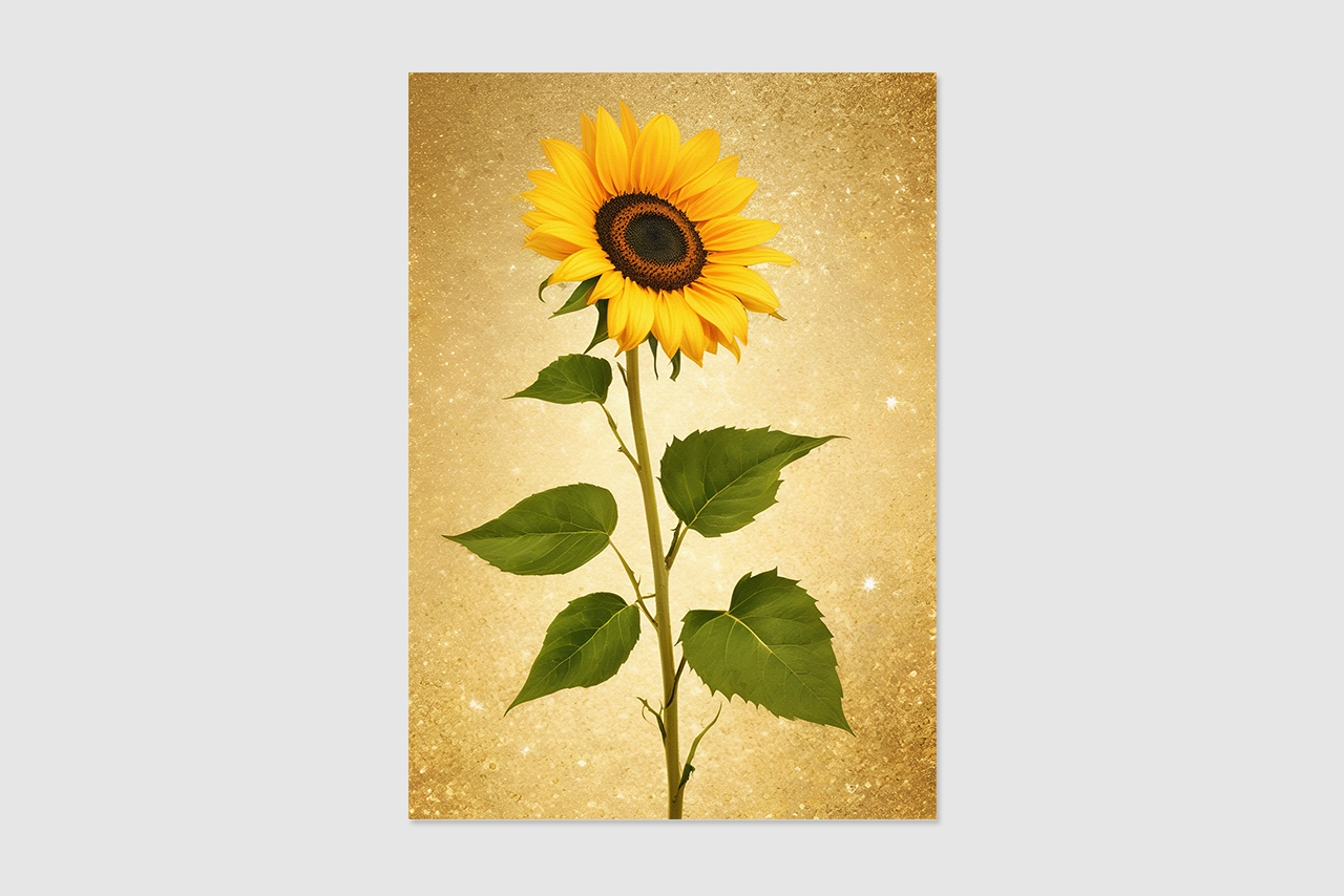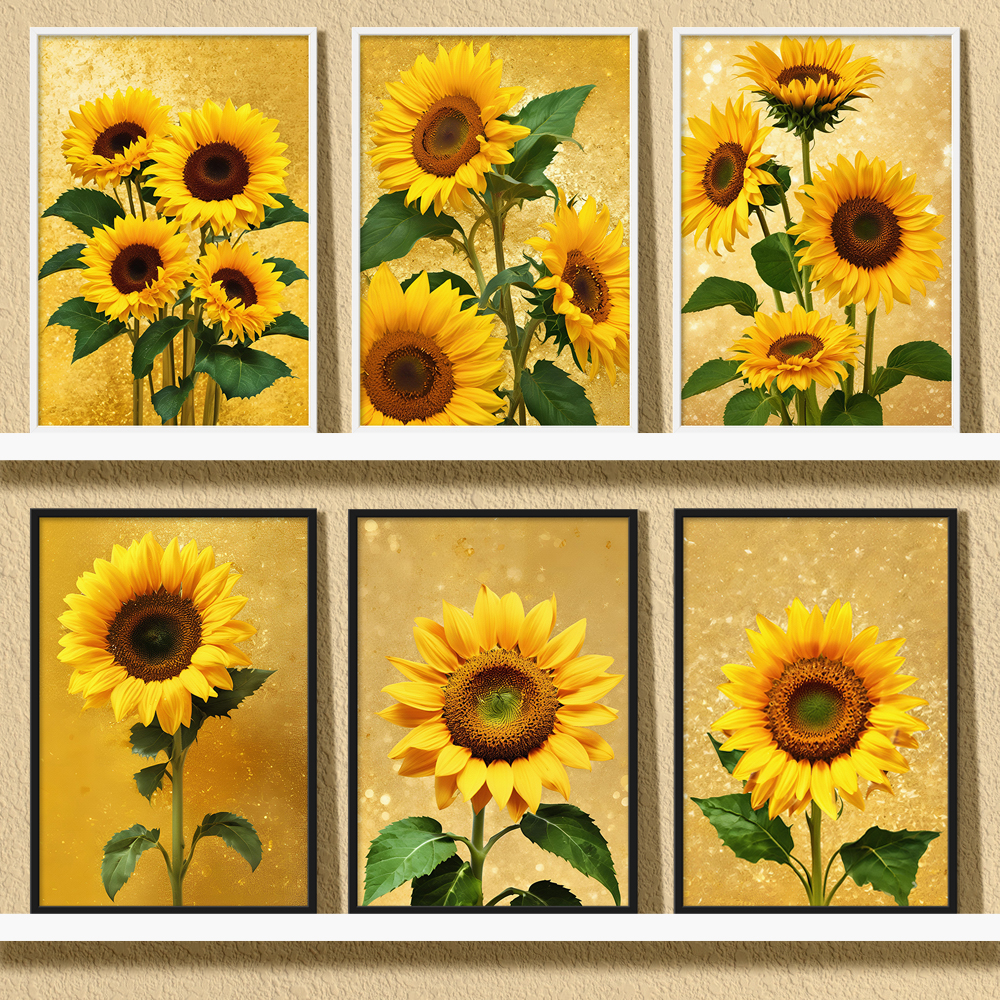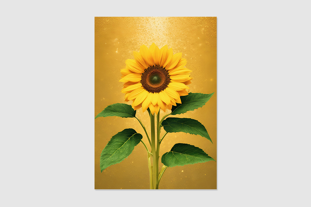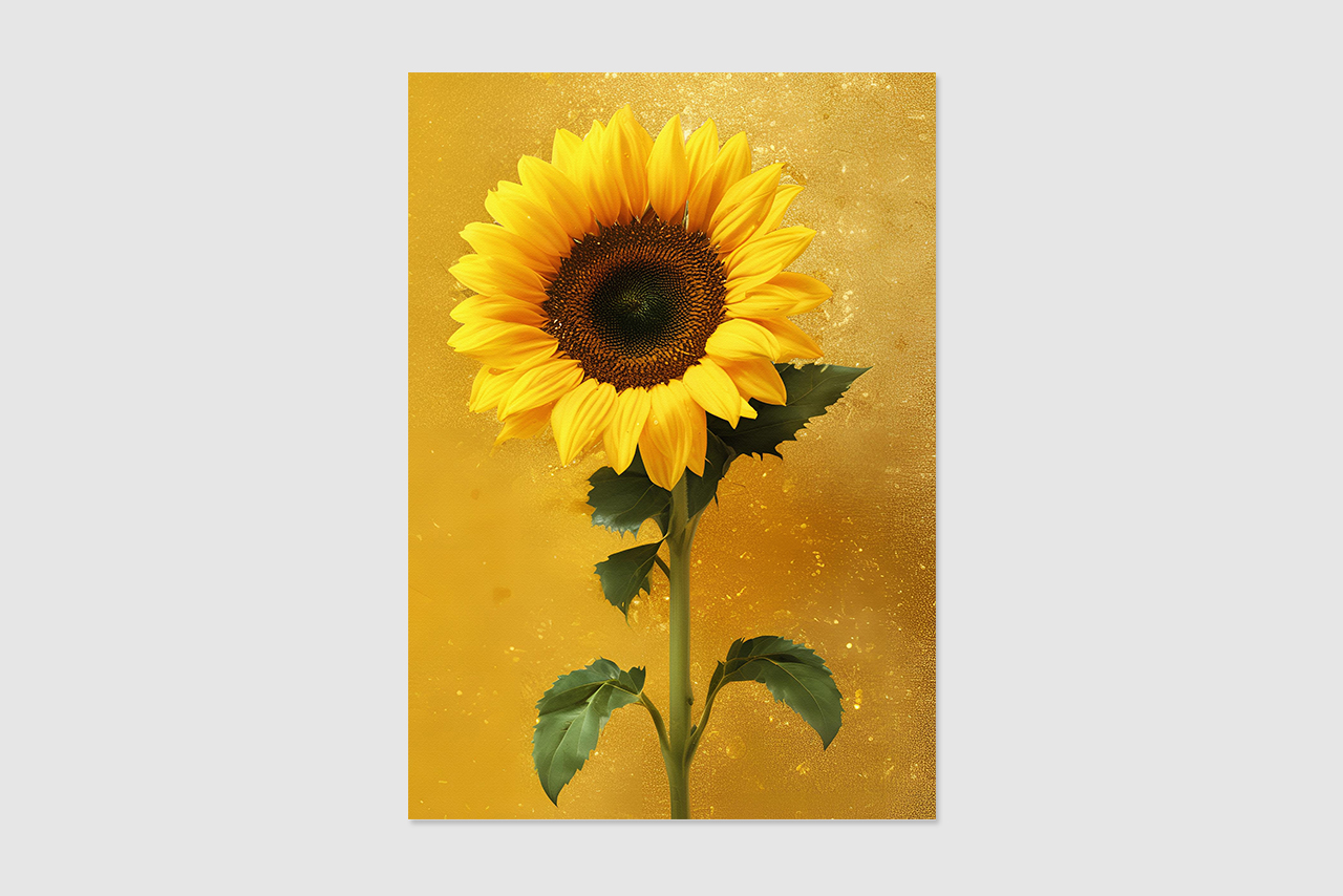 특히 황금빛 배경과 정면을 향한 해바라기의 모습은