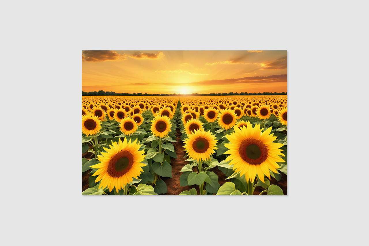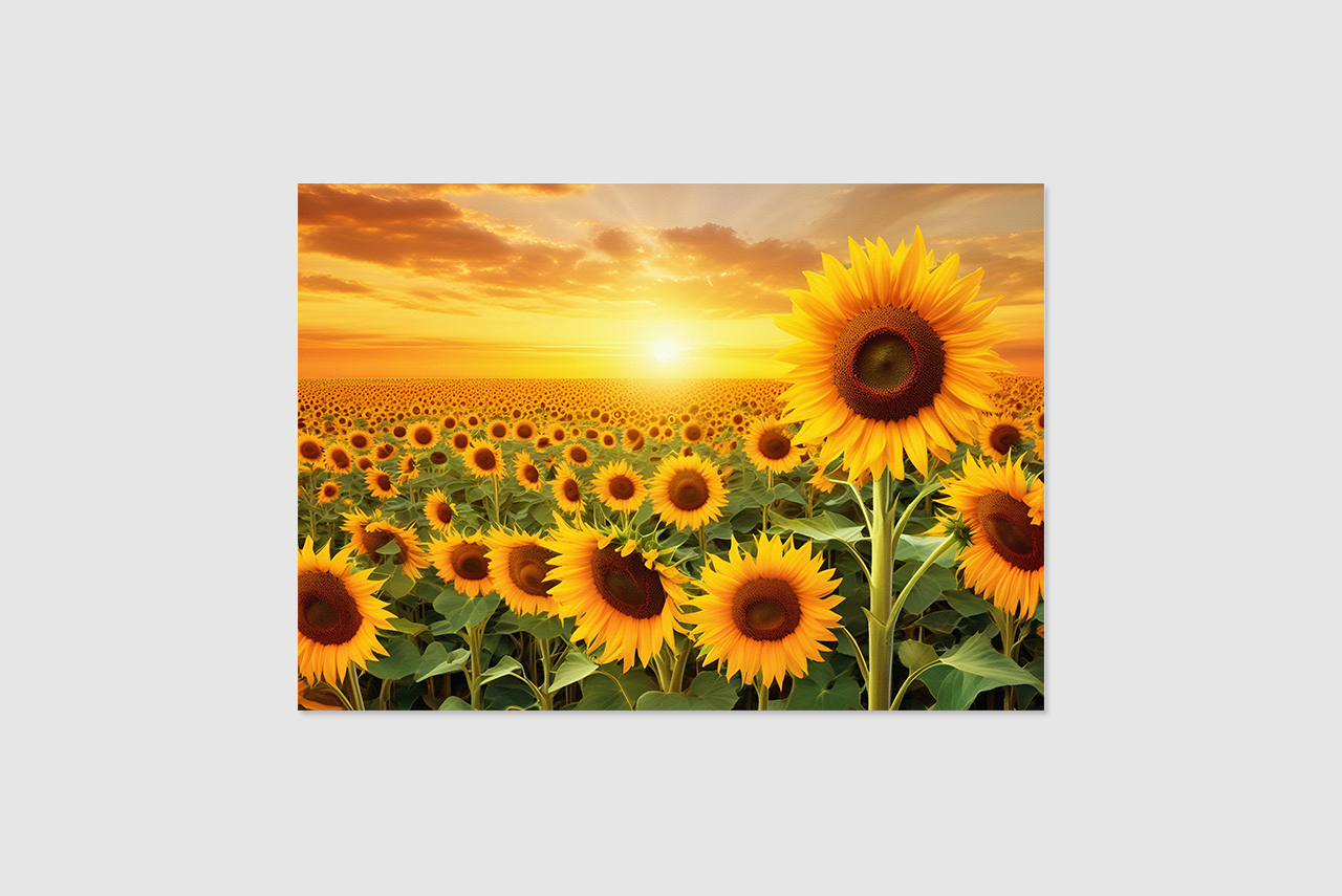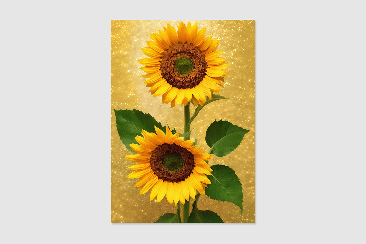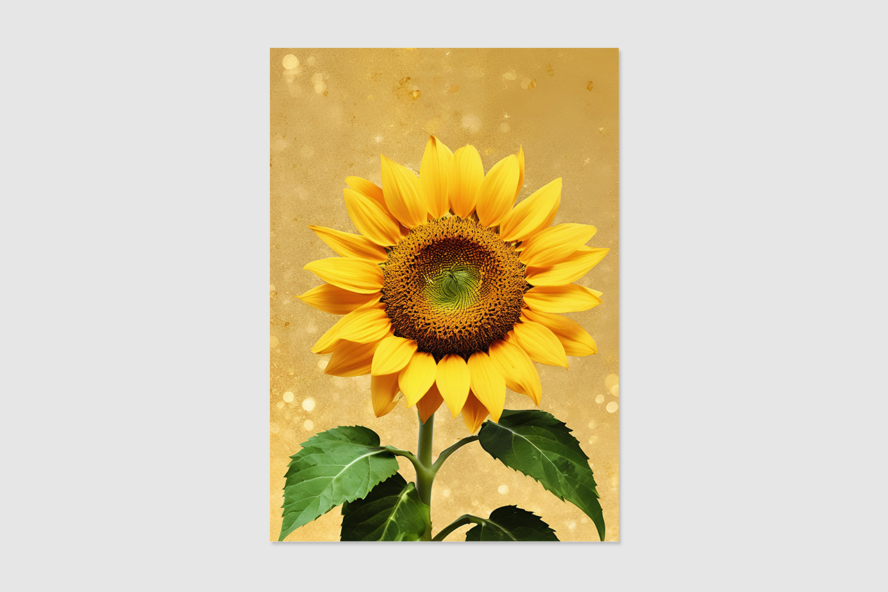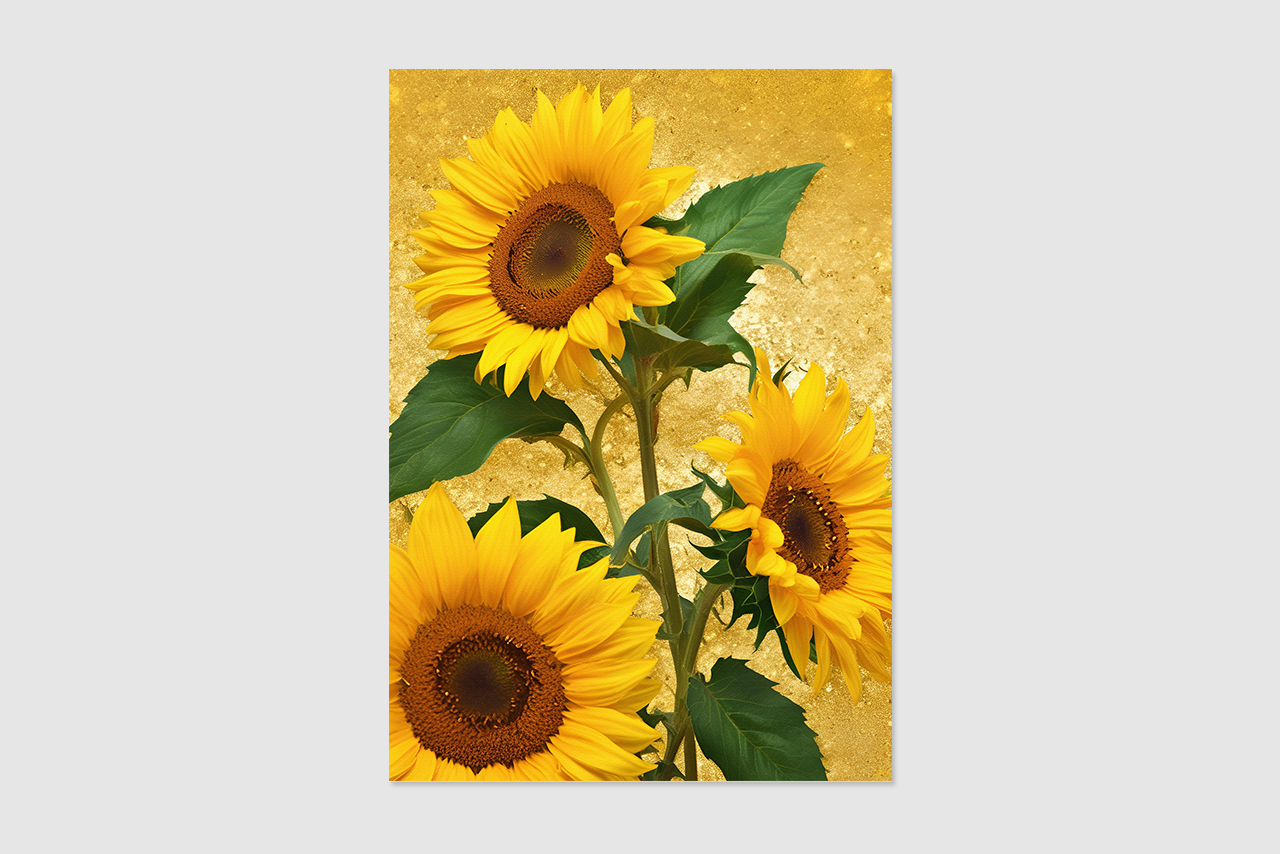특히 황금빛 배경과 정면을 향한 해바라기의 모습은