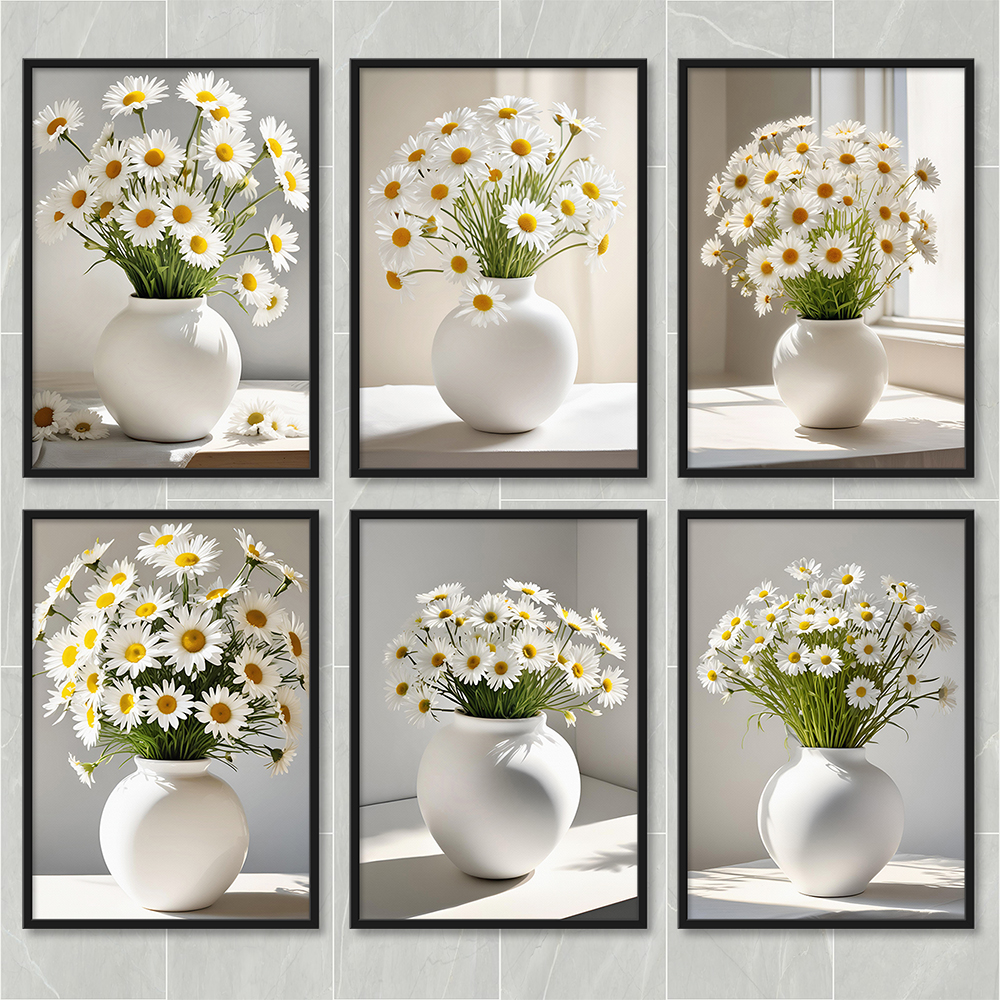 각 포스터마다 데이지꽃의 형태와 배치가 달라