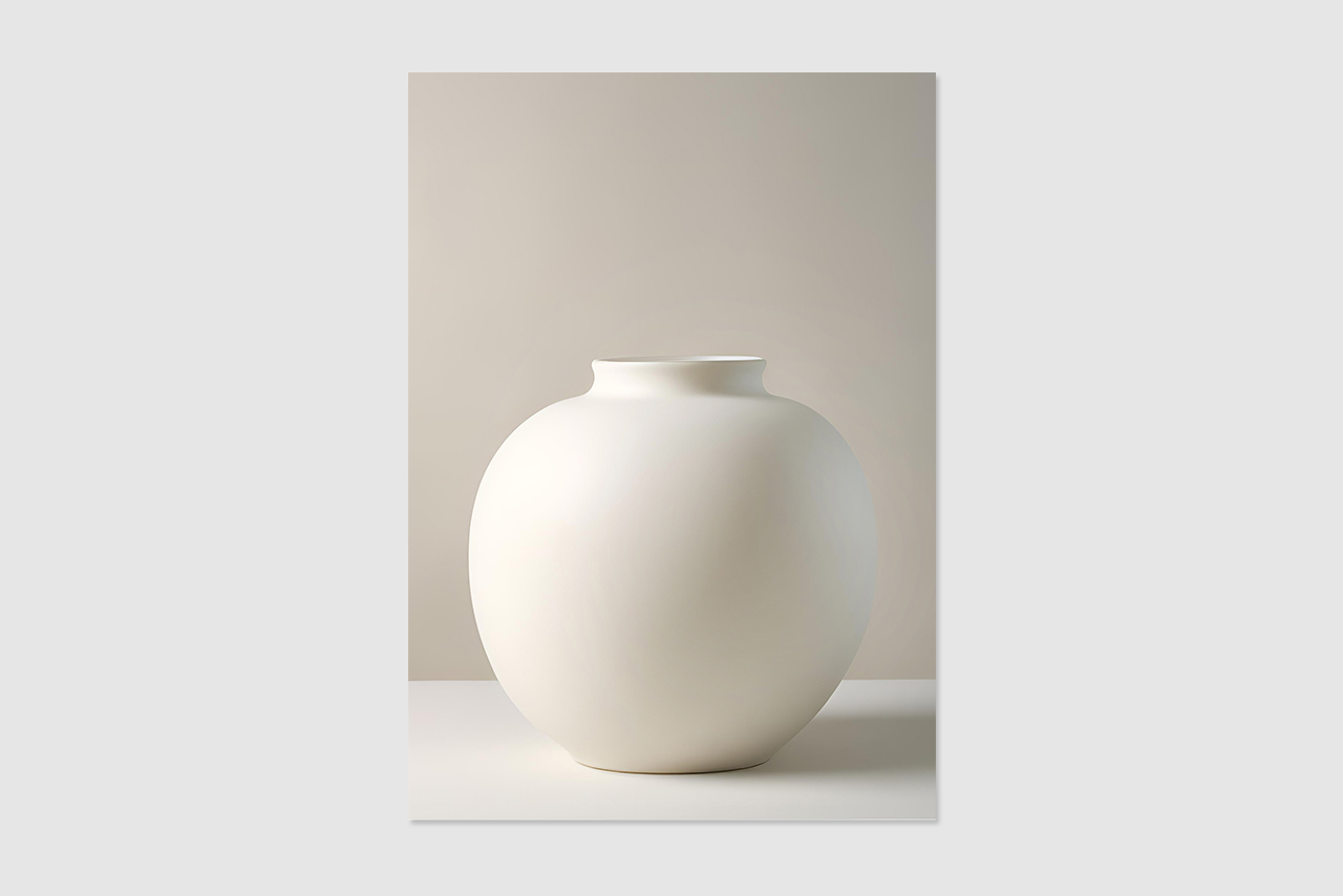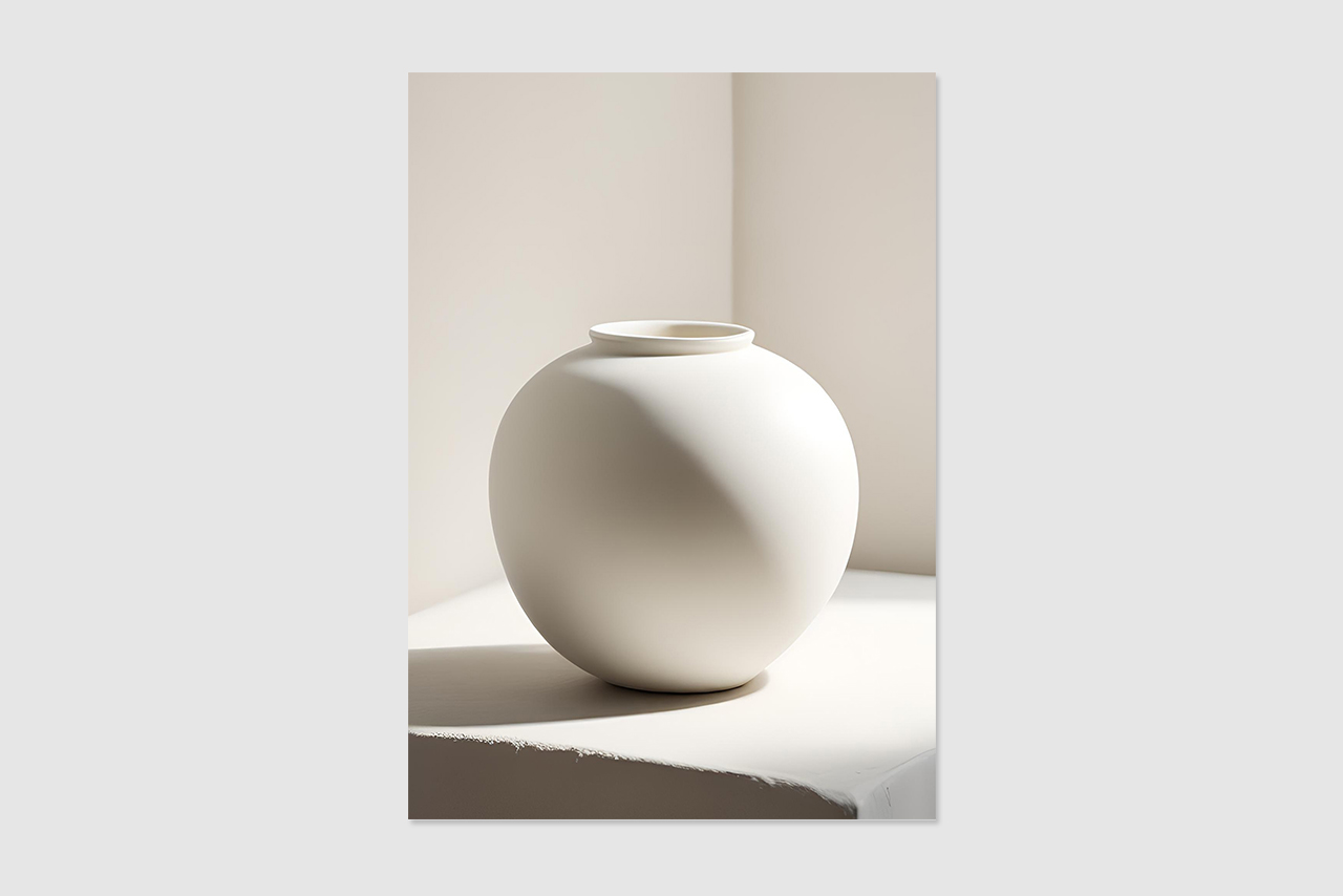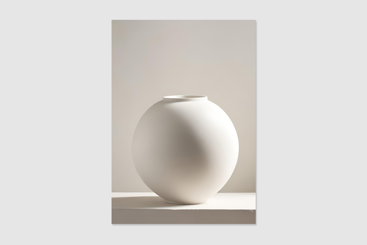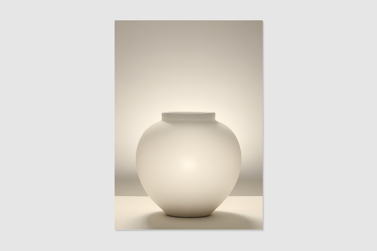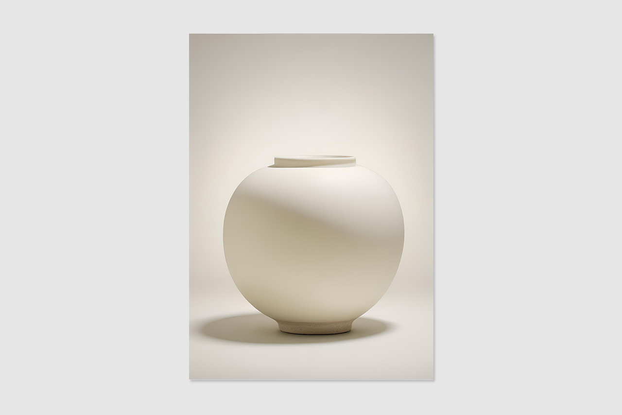밝고 부드러운 톤 안에 깃든 달항아리의 고요함은