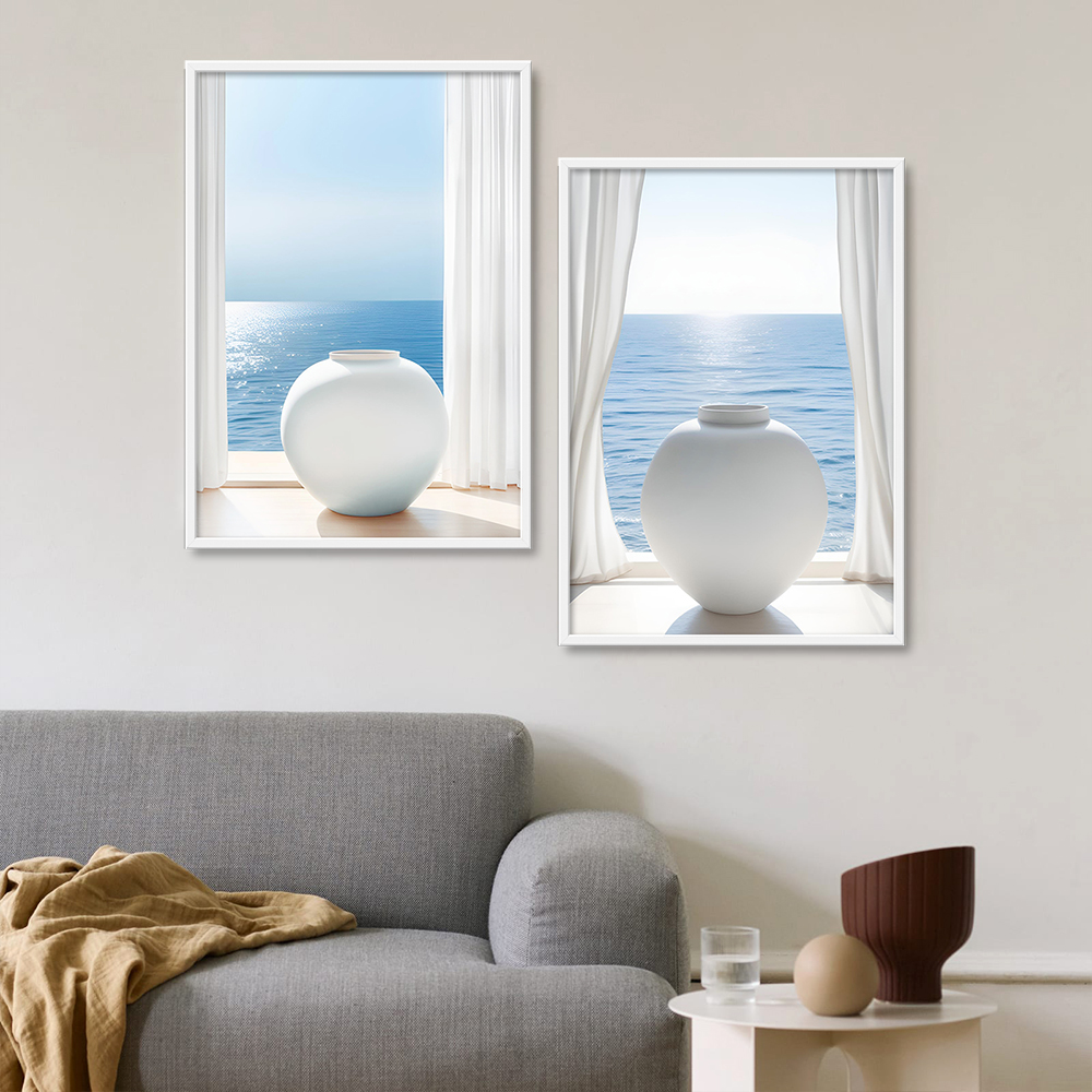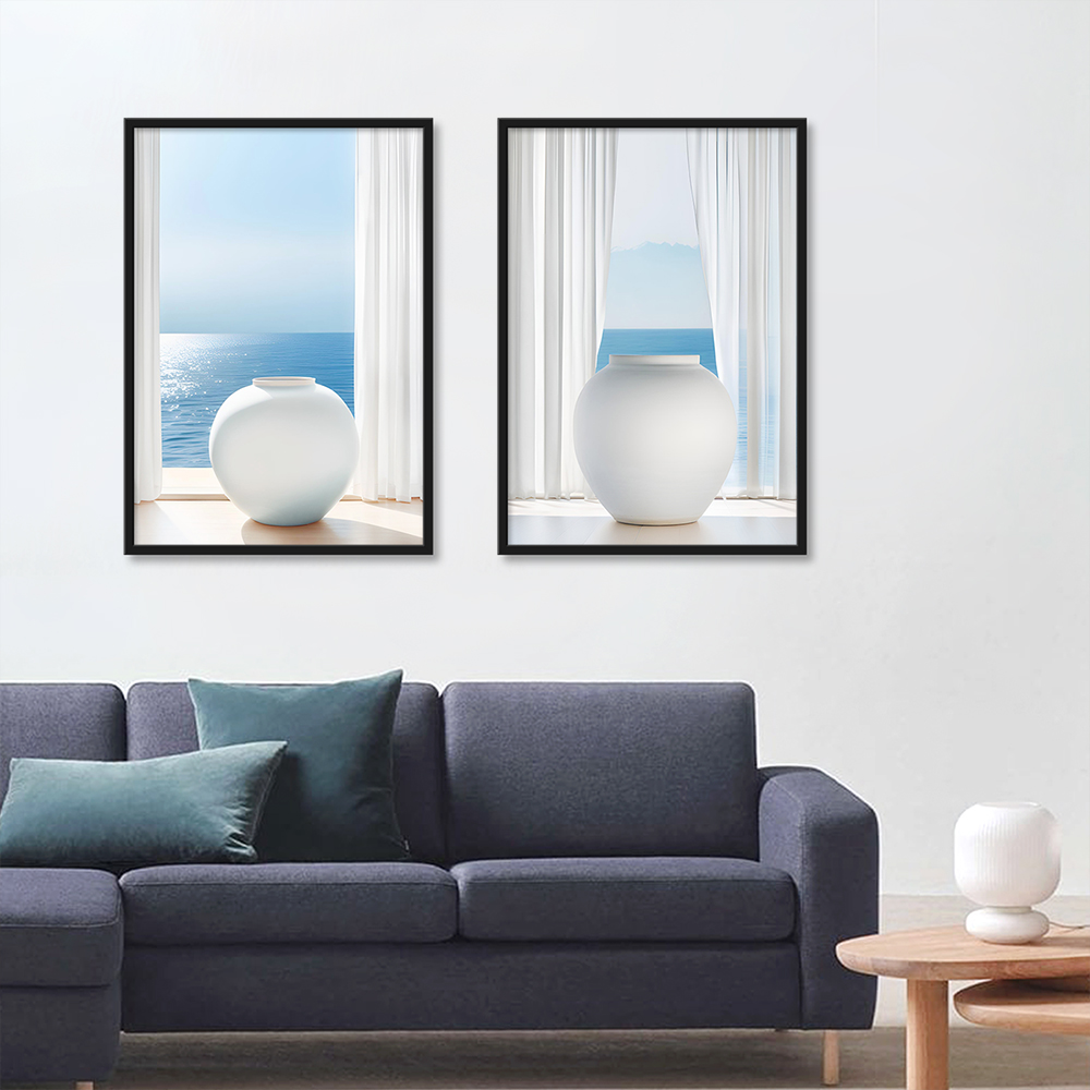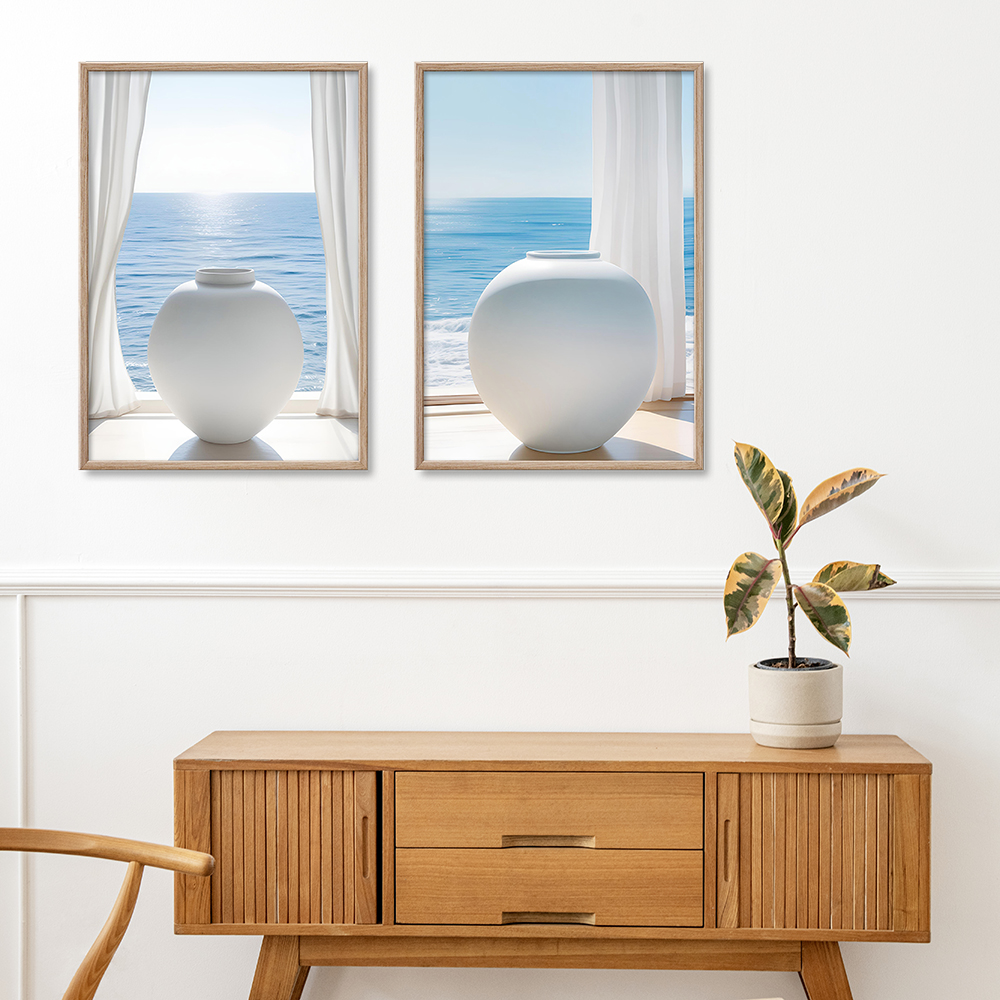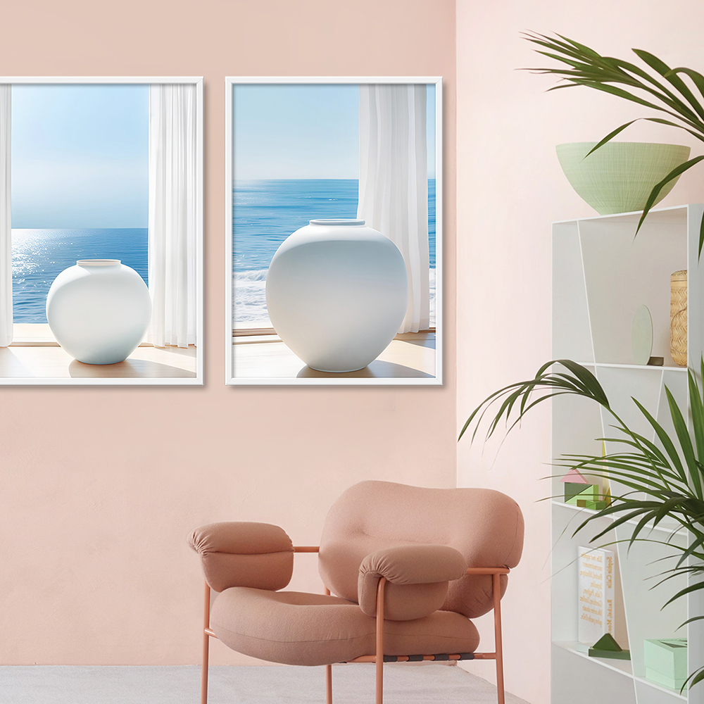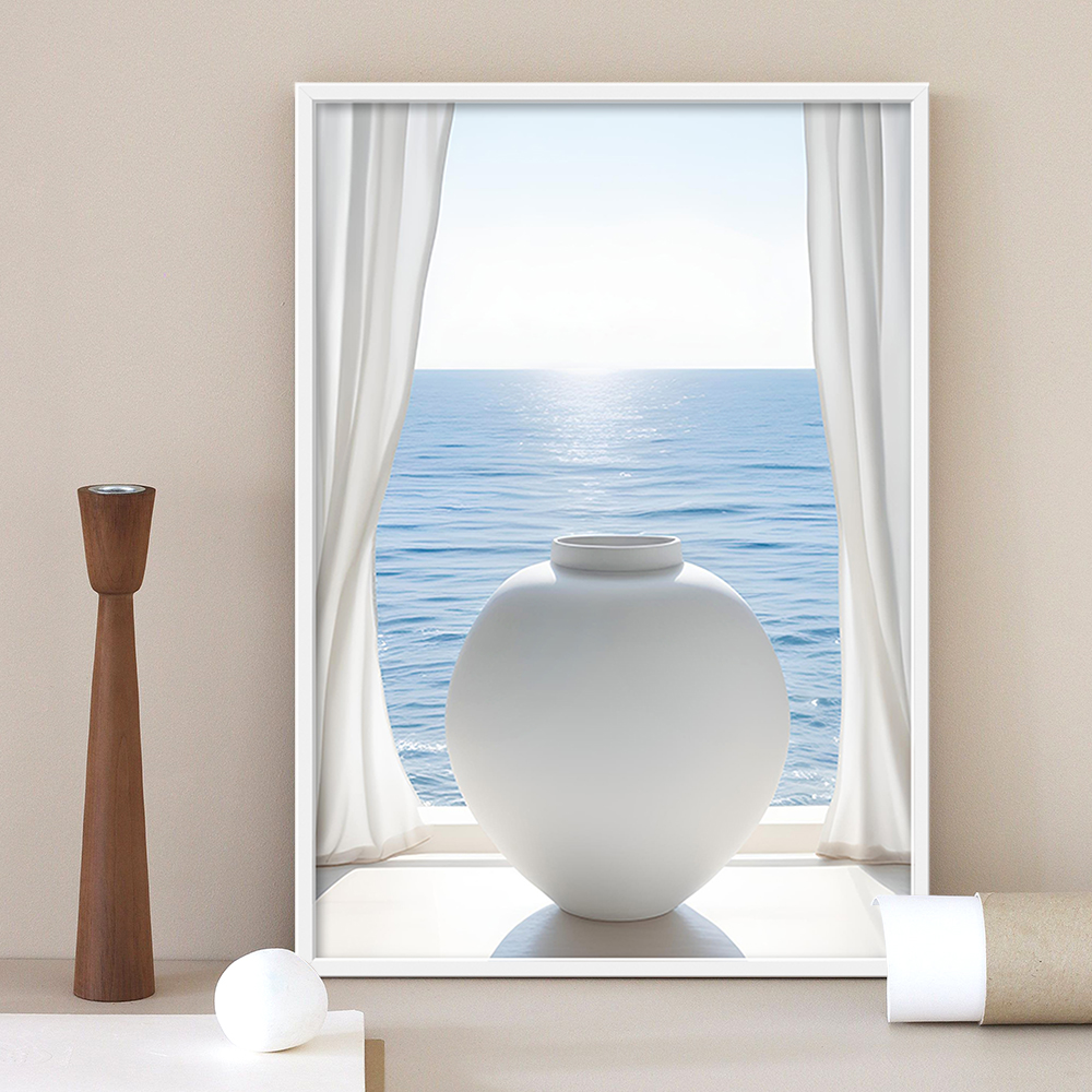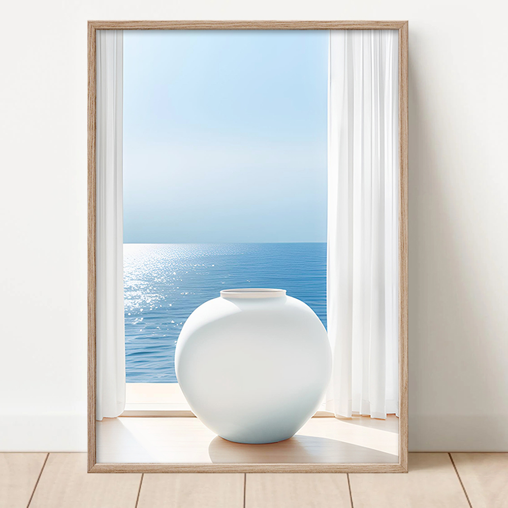 바다와 달항아리 5종 금전운 재물운 거실 현관 침실 풍수 인테리어 그림 액자의 기본 옵션은 포스터만 발송되며