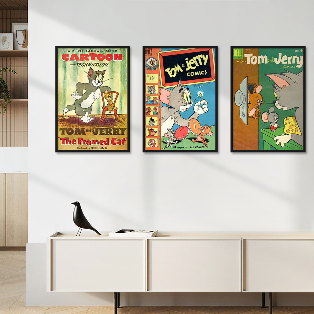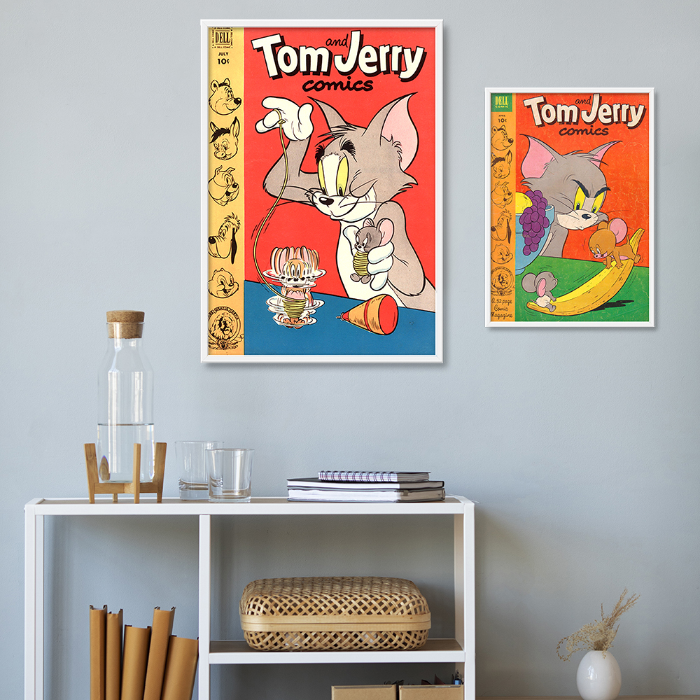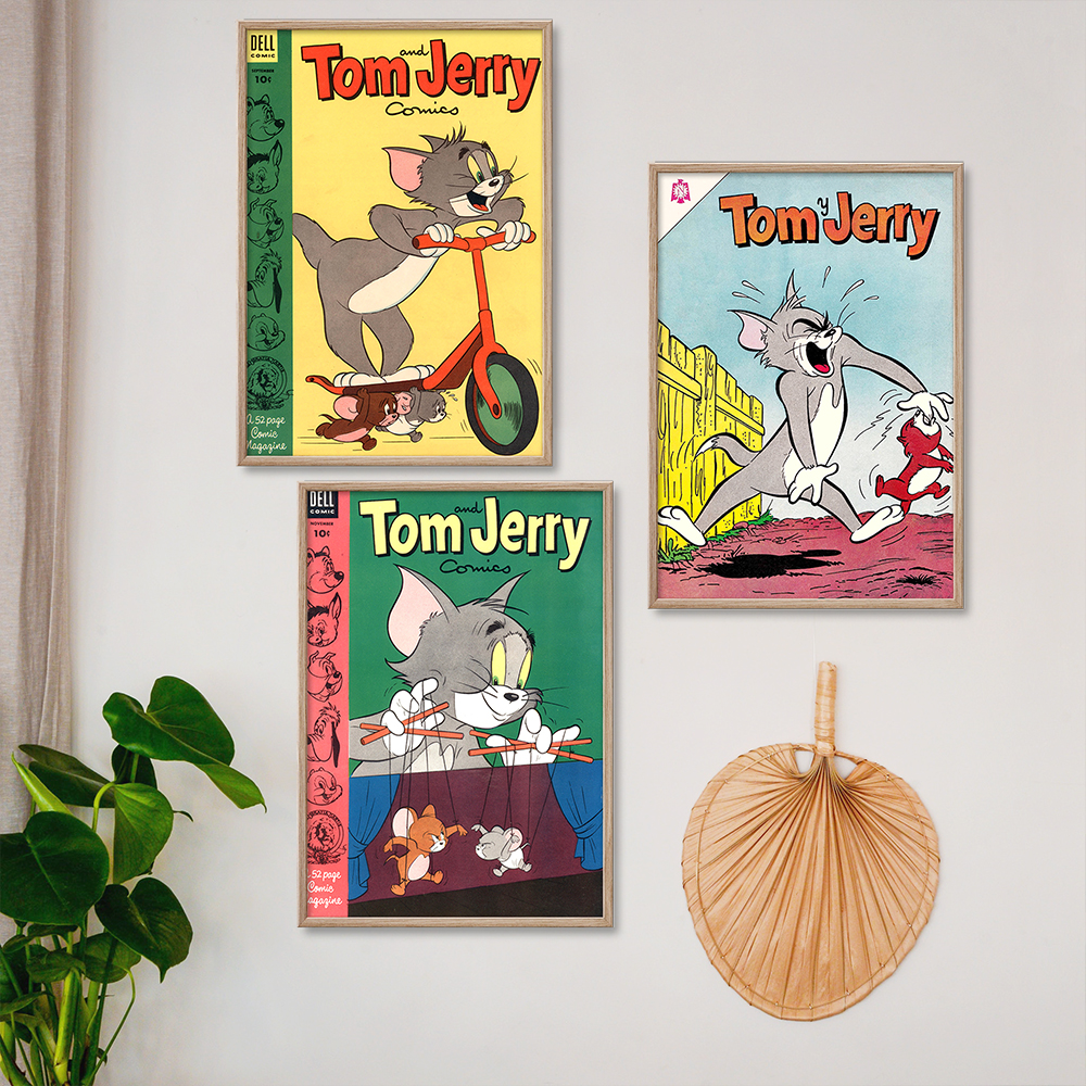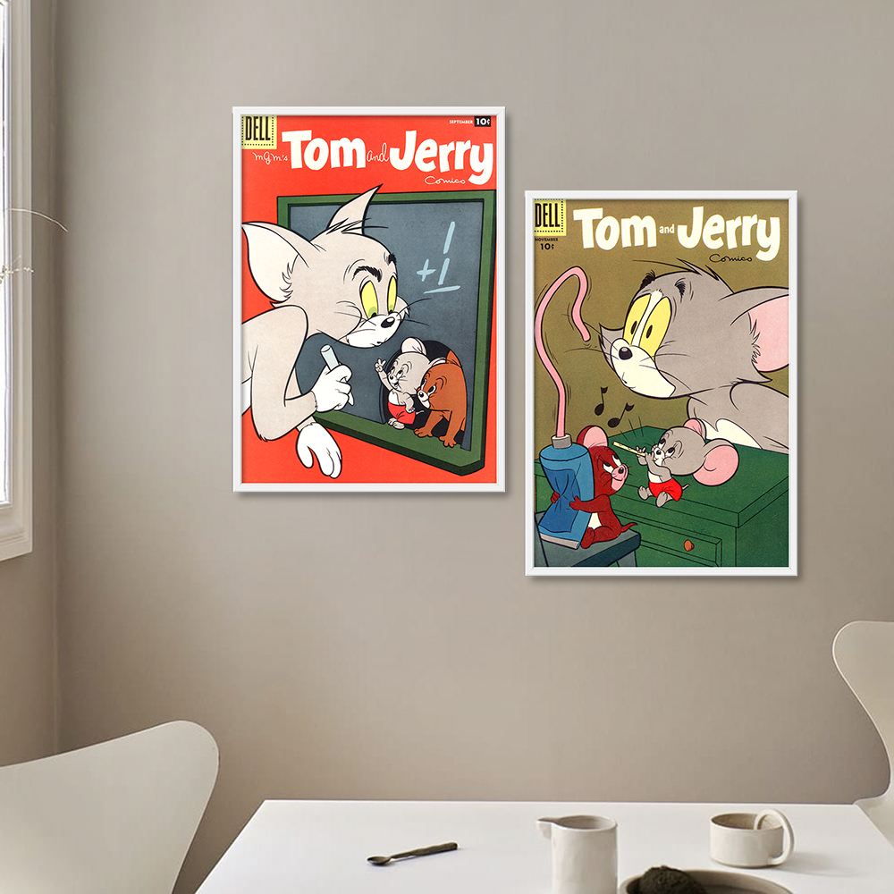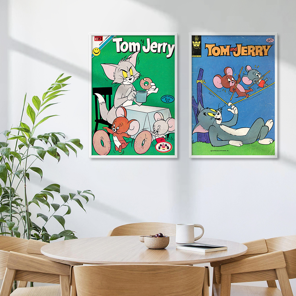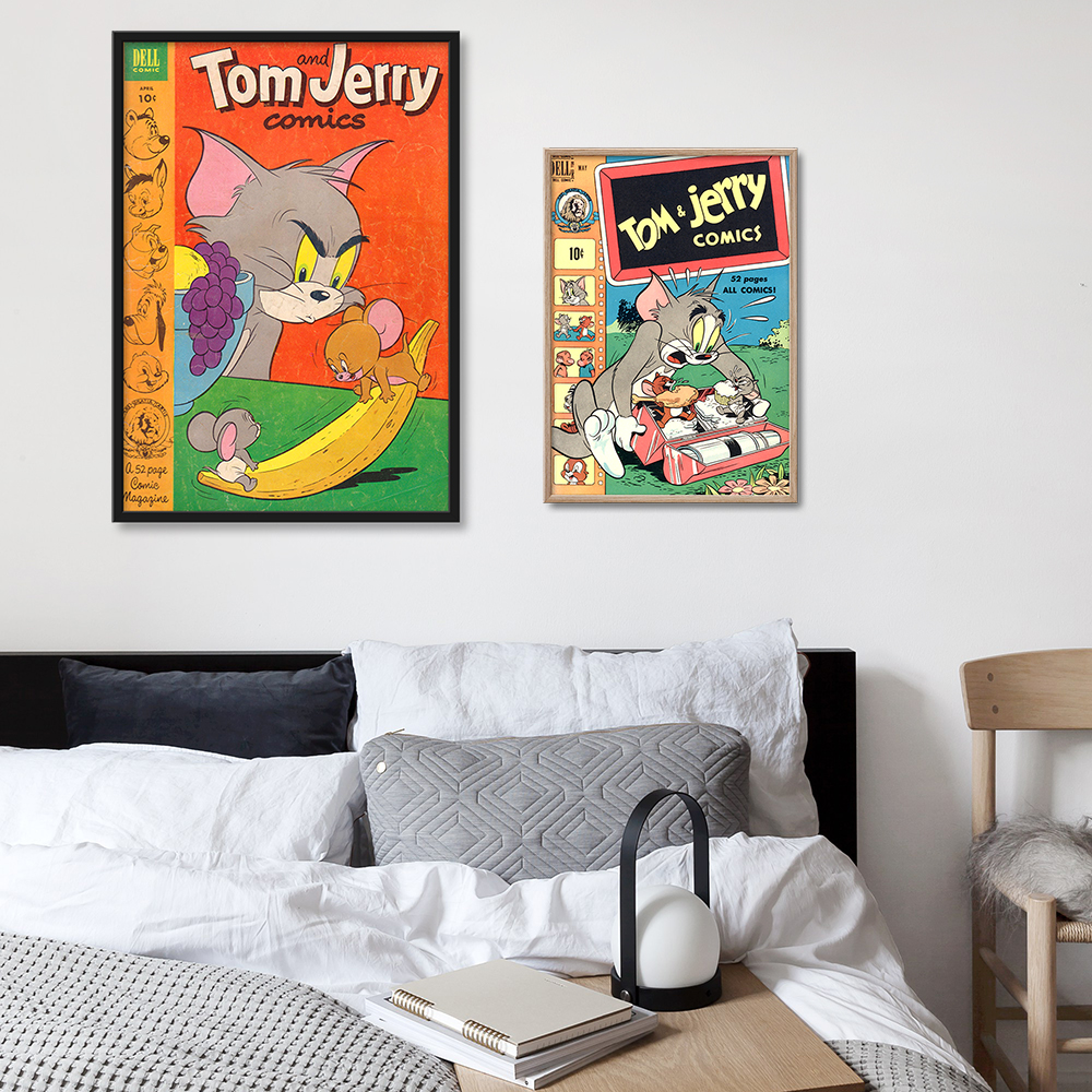<톰과 제리 빈티지 북커버 20종 레트로 포스터 거실 카페 아이방 인테리어 그림 액자>