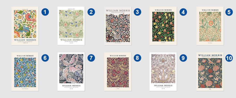 <패턴의 거장 윌리엄 모리스 10종 포스터 꽃 보태니컬 플로럴 거실 카페 인테리어 그림 액자>