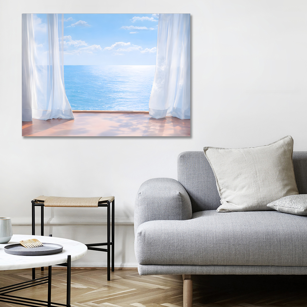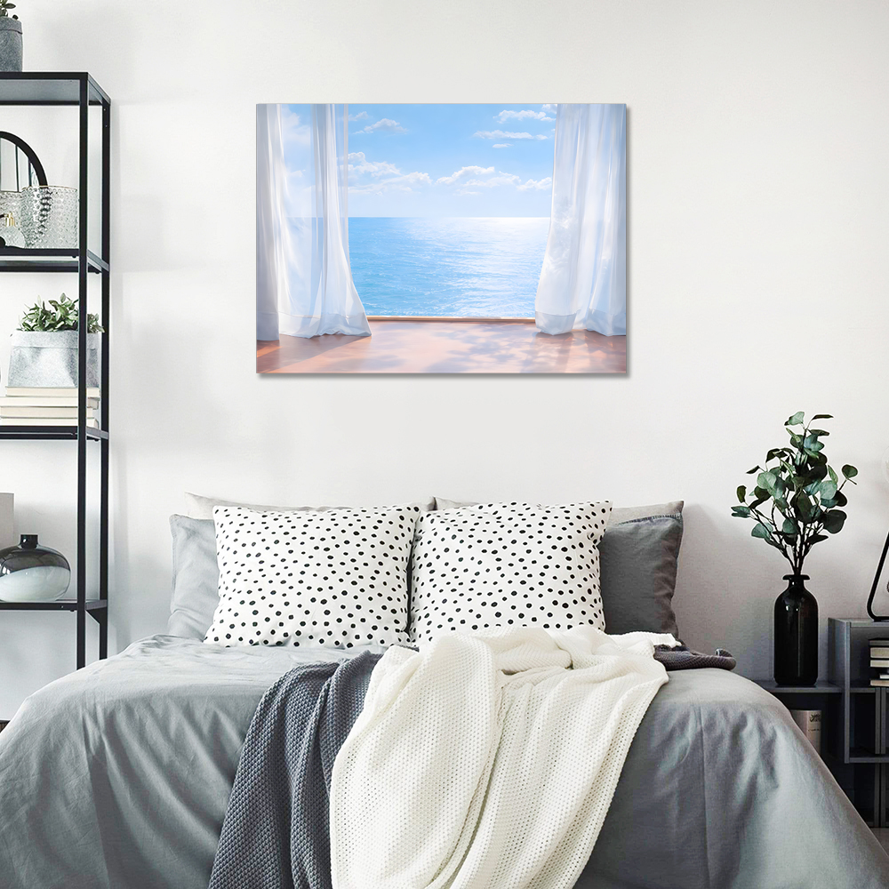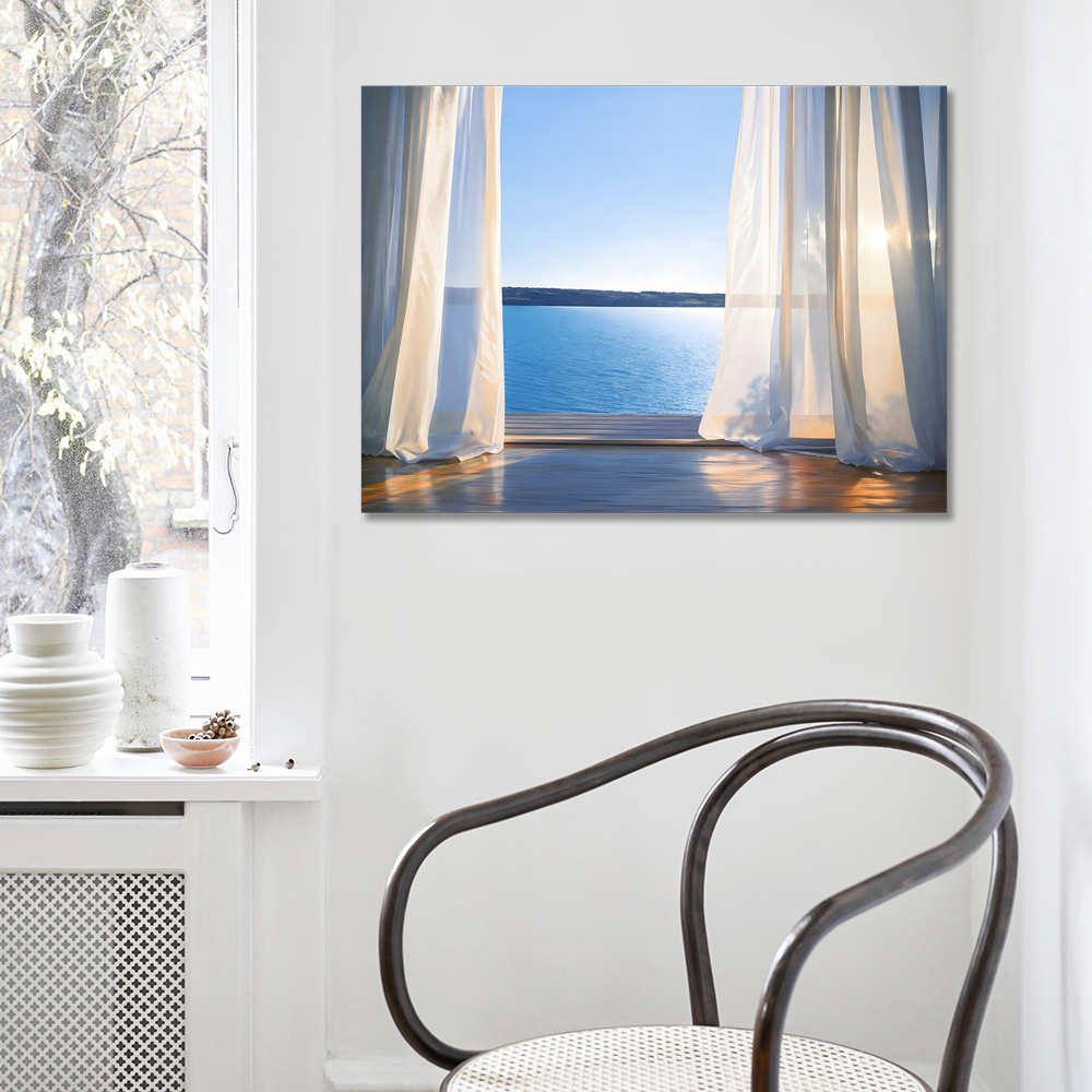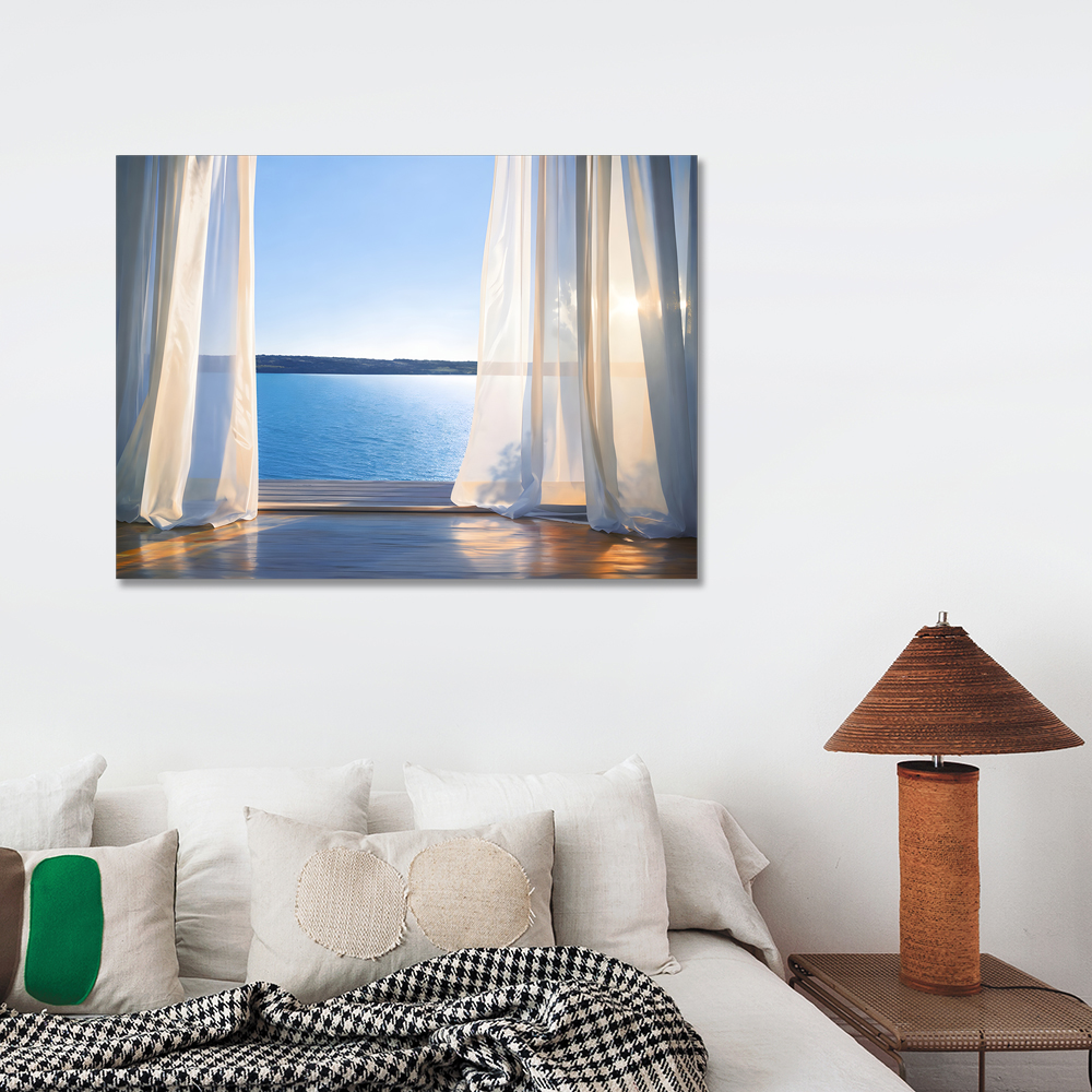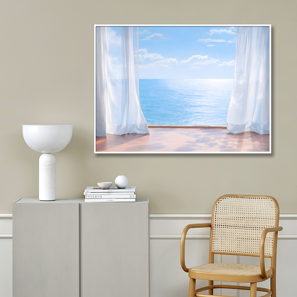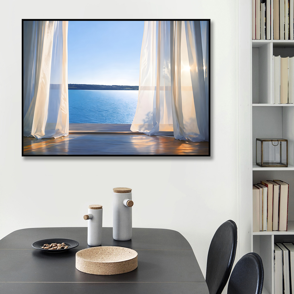커튼과 바다 캔버스 액자