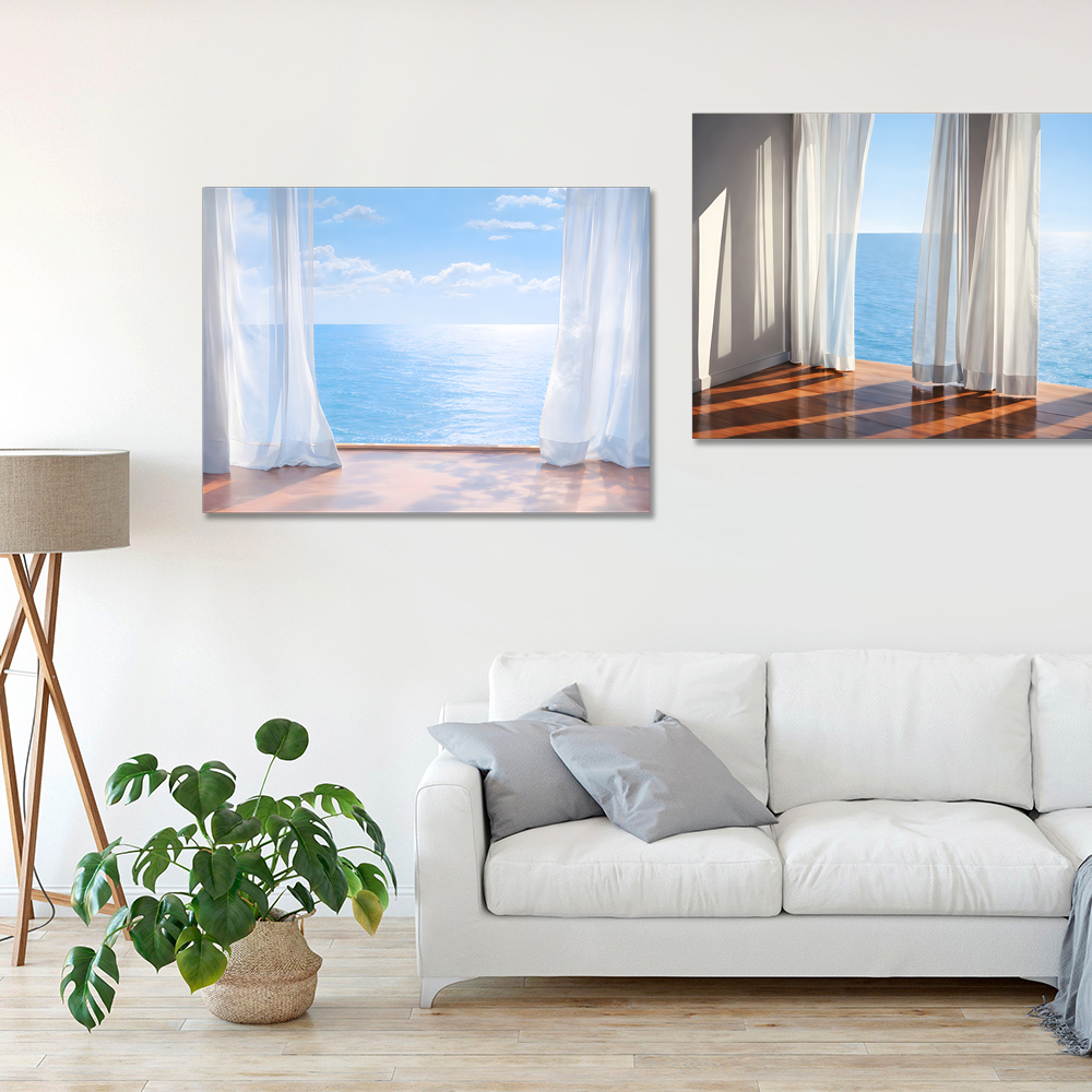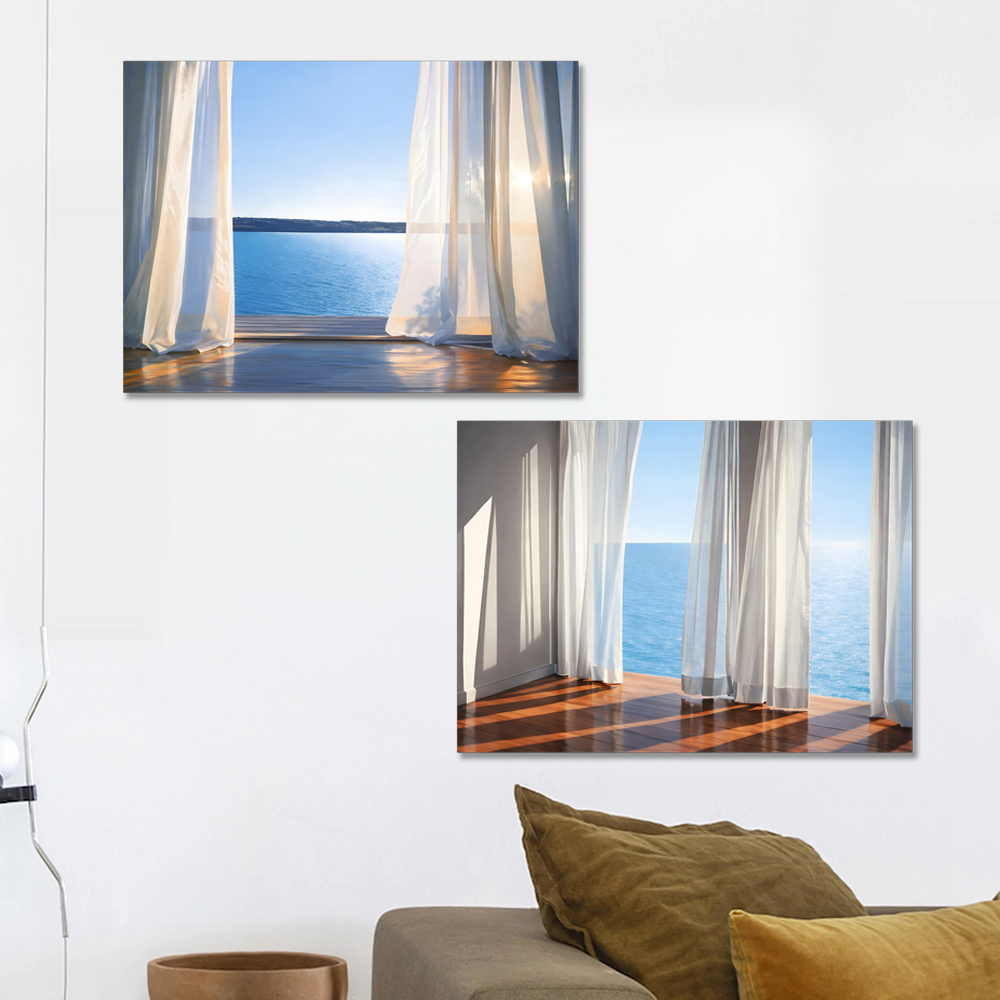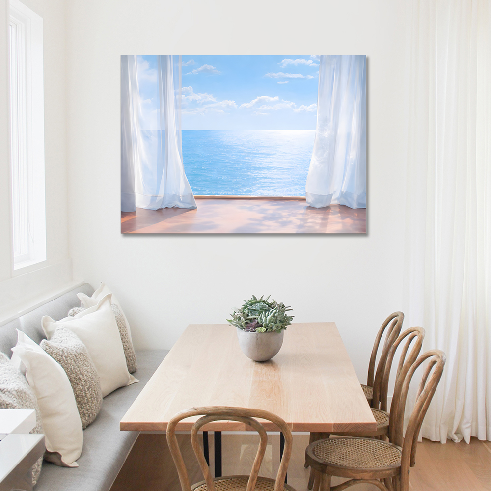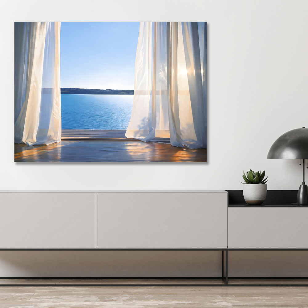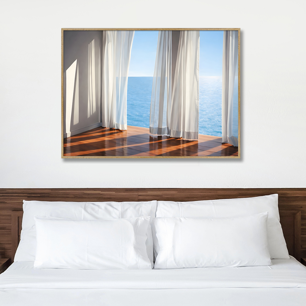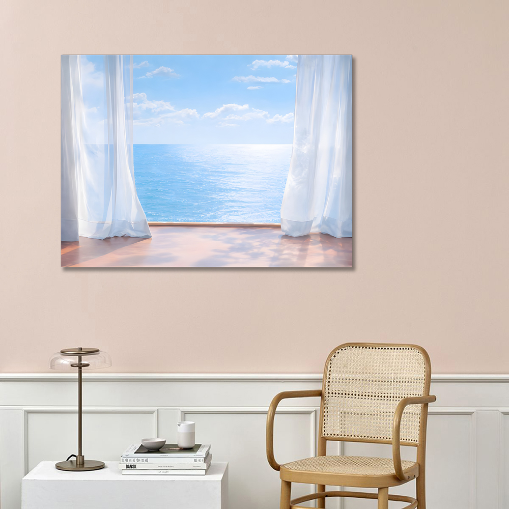 커튼과 바다 캔버스 액자