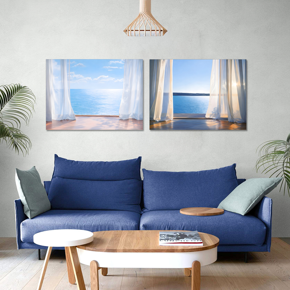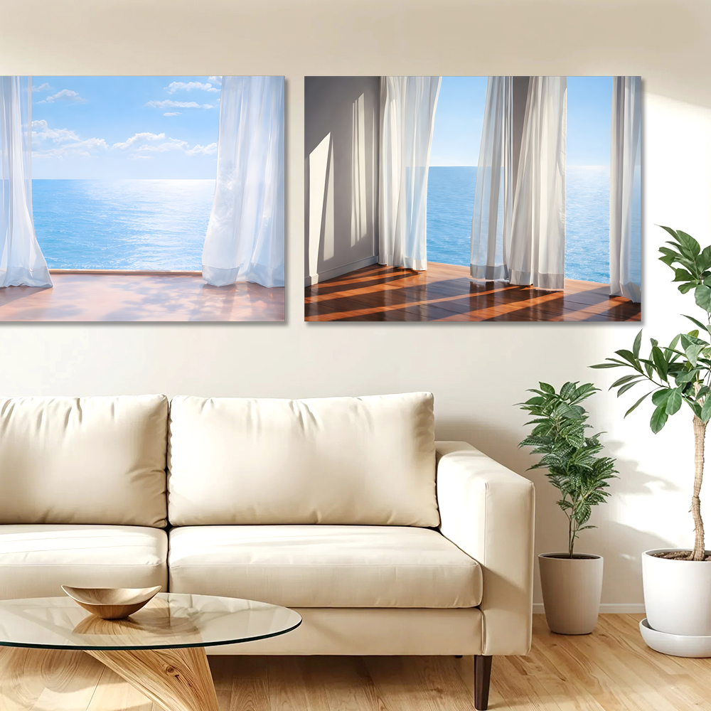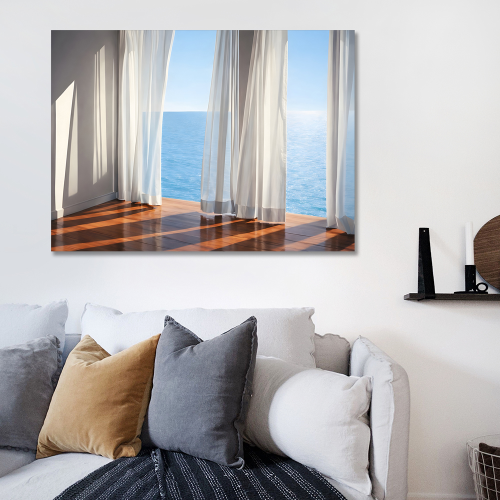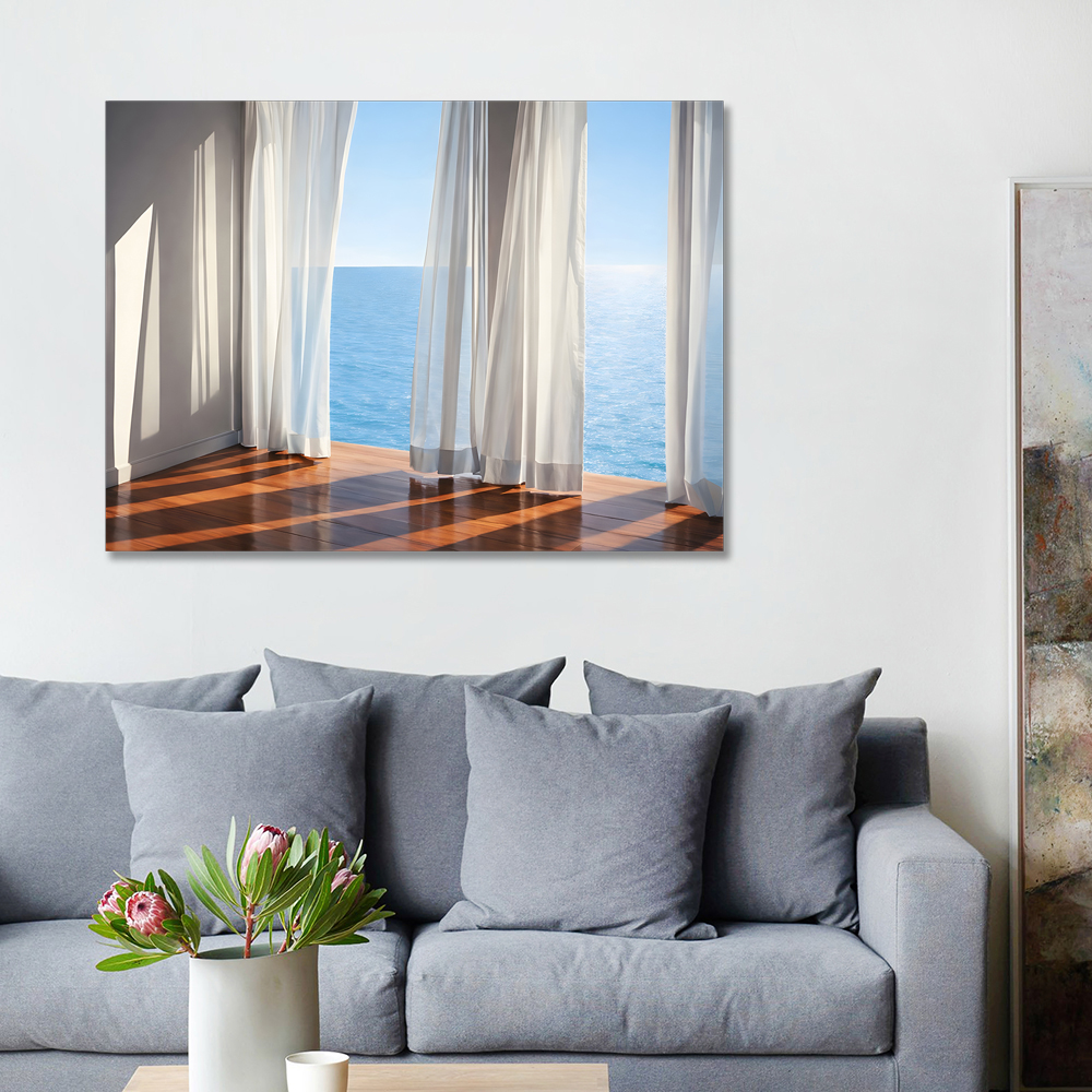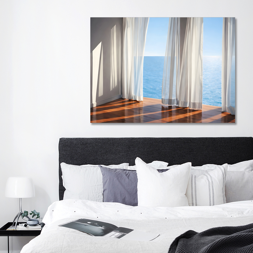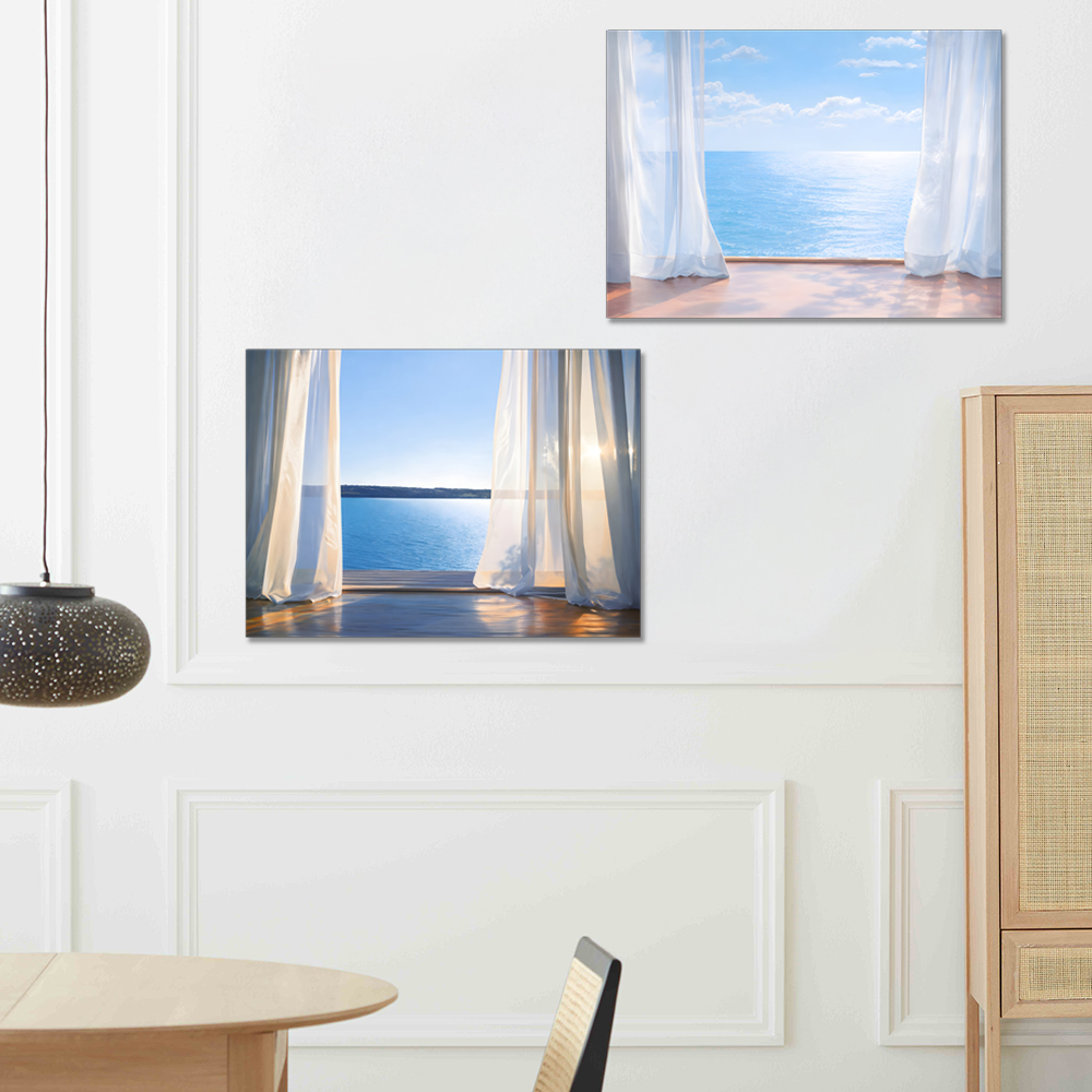 커튼과 바다 캔버스 액자
