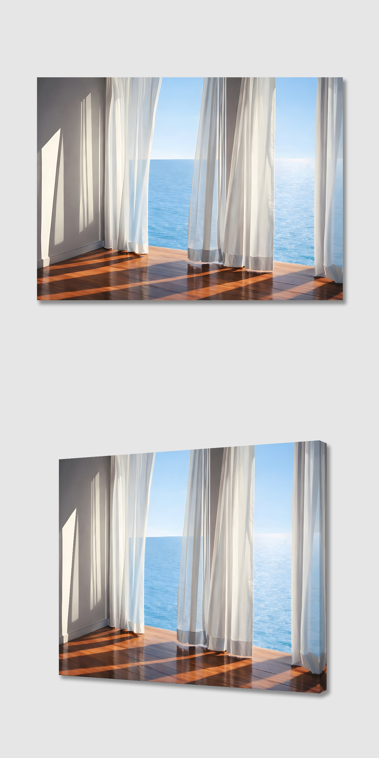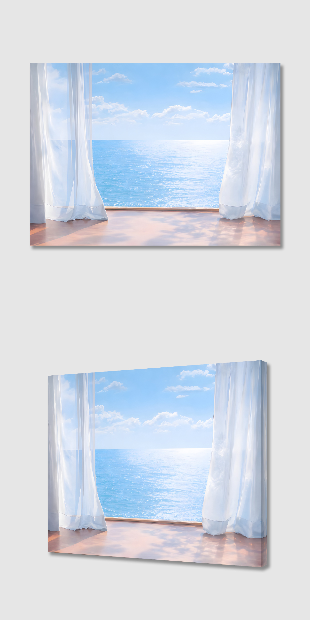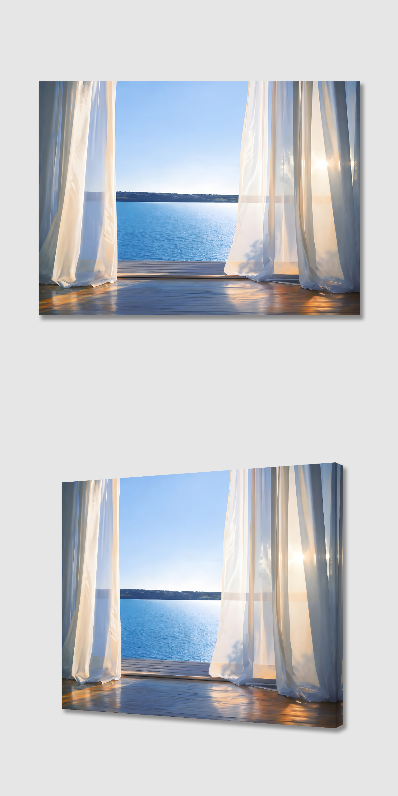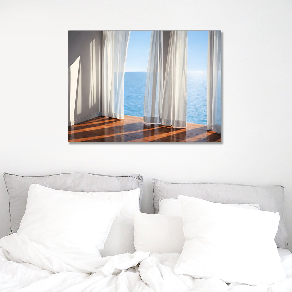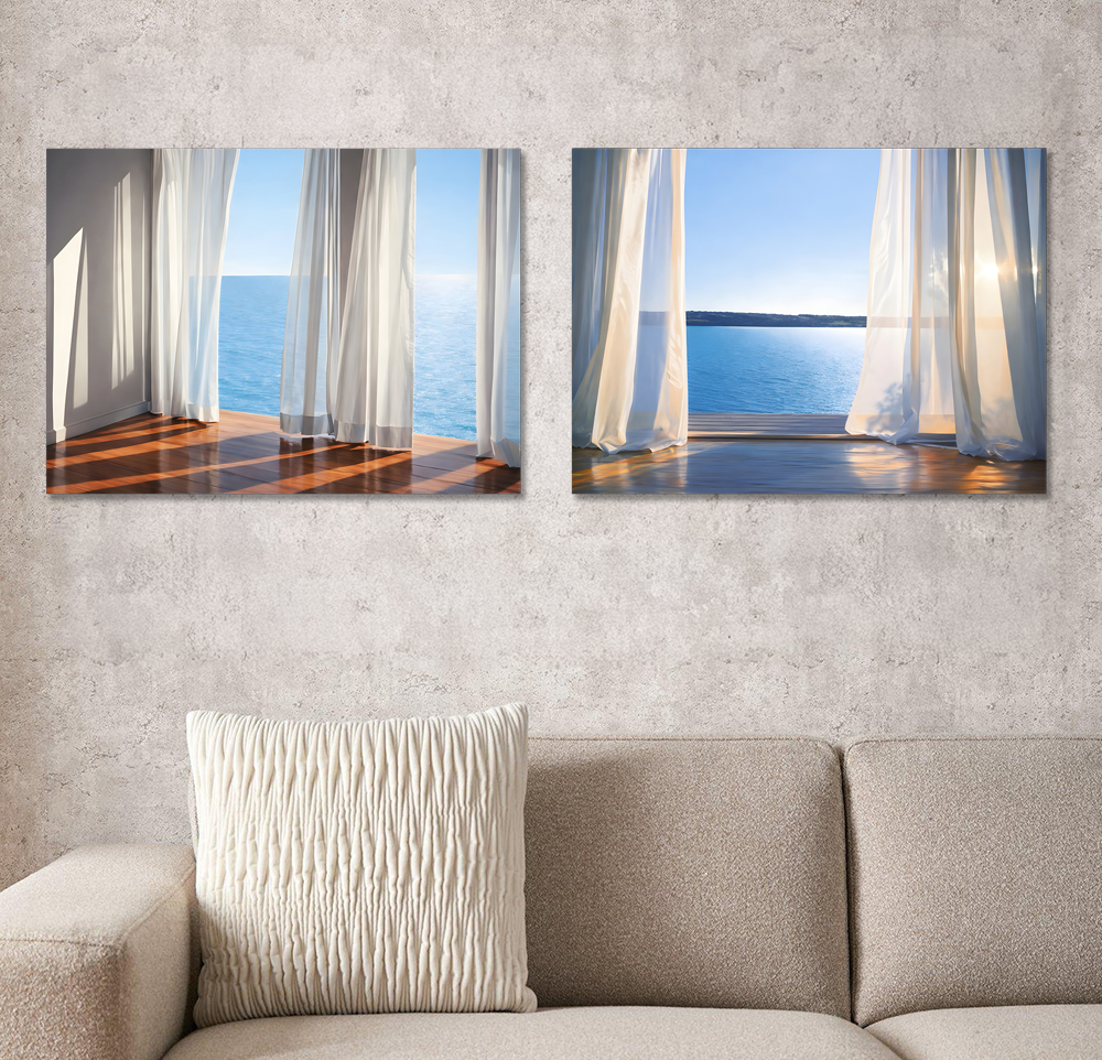 커튼과 바다 캔버스 액자