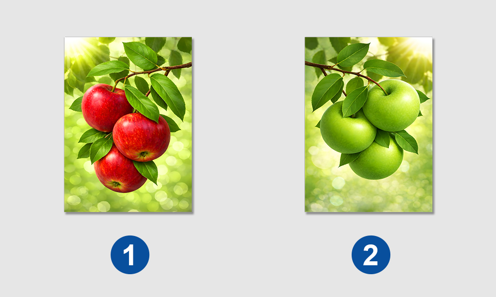 좌) 1. 빨간사과 나무 + 우) 2. 청사과 나무