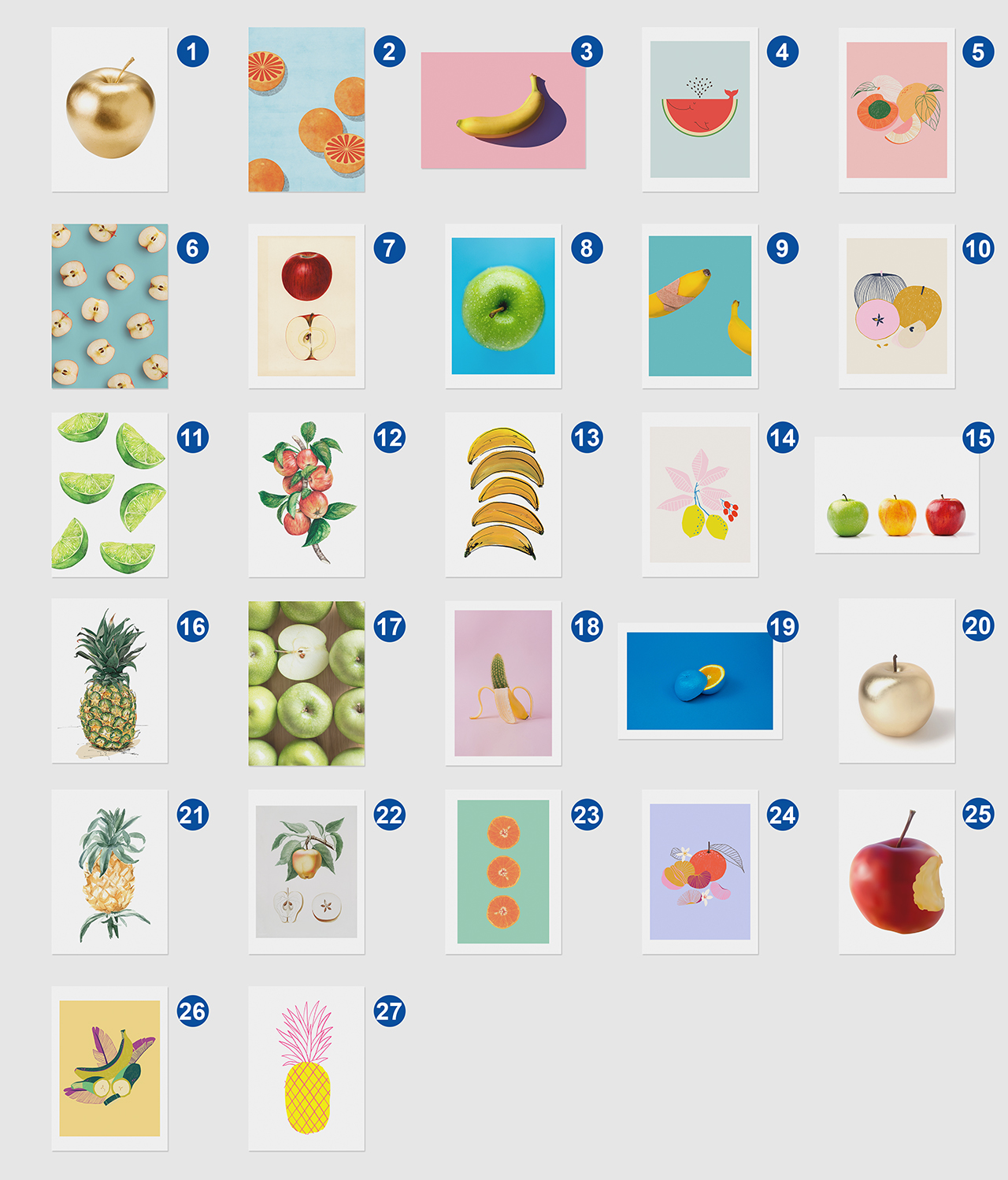 그럼 이제 판매 상품인 '상큼한 사과와 여러과일 포스터 27종 북유럽 그림 인테리어액자' 에 대해 상세하게 안내해드릴게요!